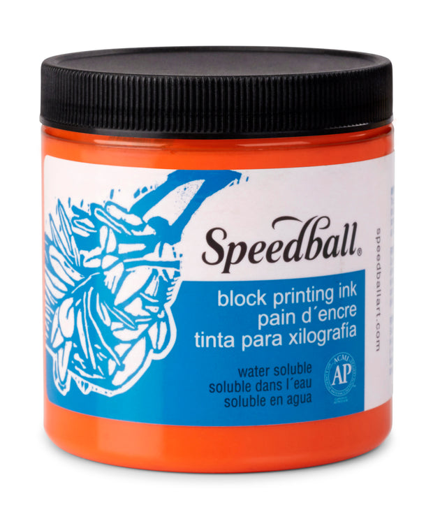 Speedball 8oz Water-Soluble Block Ink Orange, For Block Printing, Lino Printing, Screen Printing, For Artists Kit