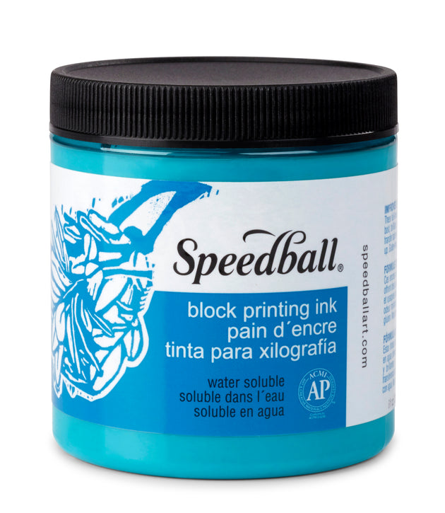 Speedball 8oz Water-Soluble Block Ink Turquoise, For Block Printing, Lino Printing, Screen Printing, For Artists Kit