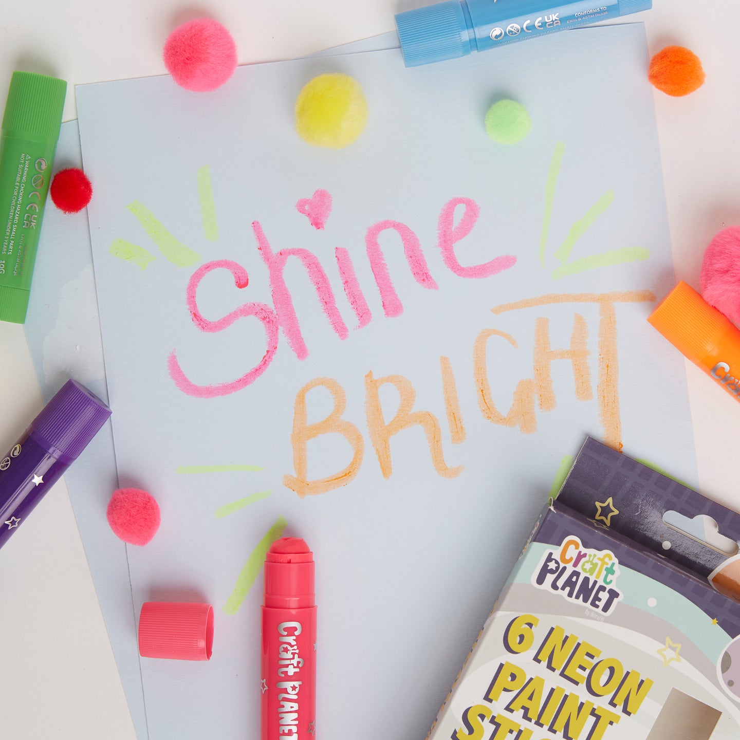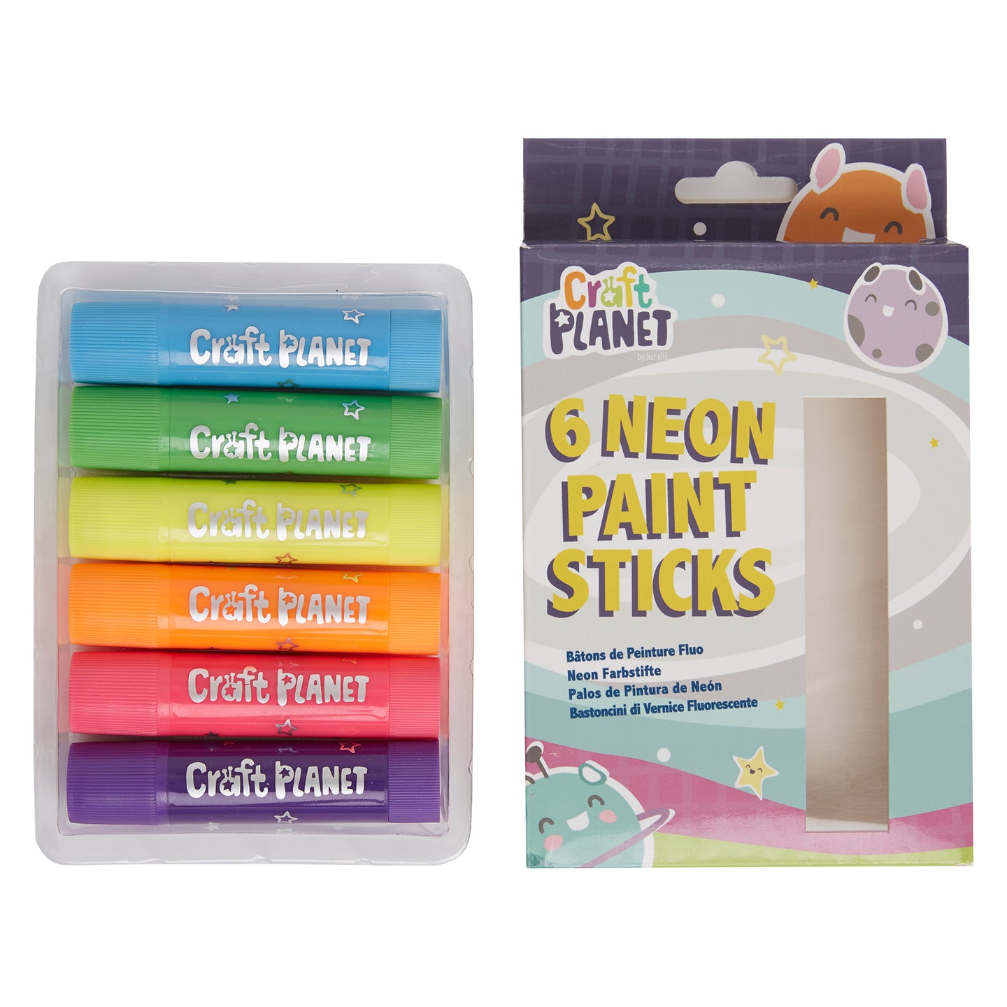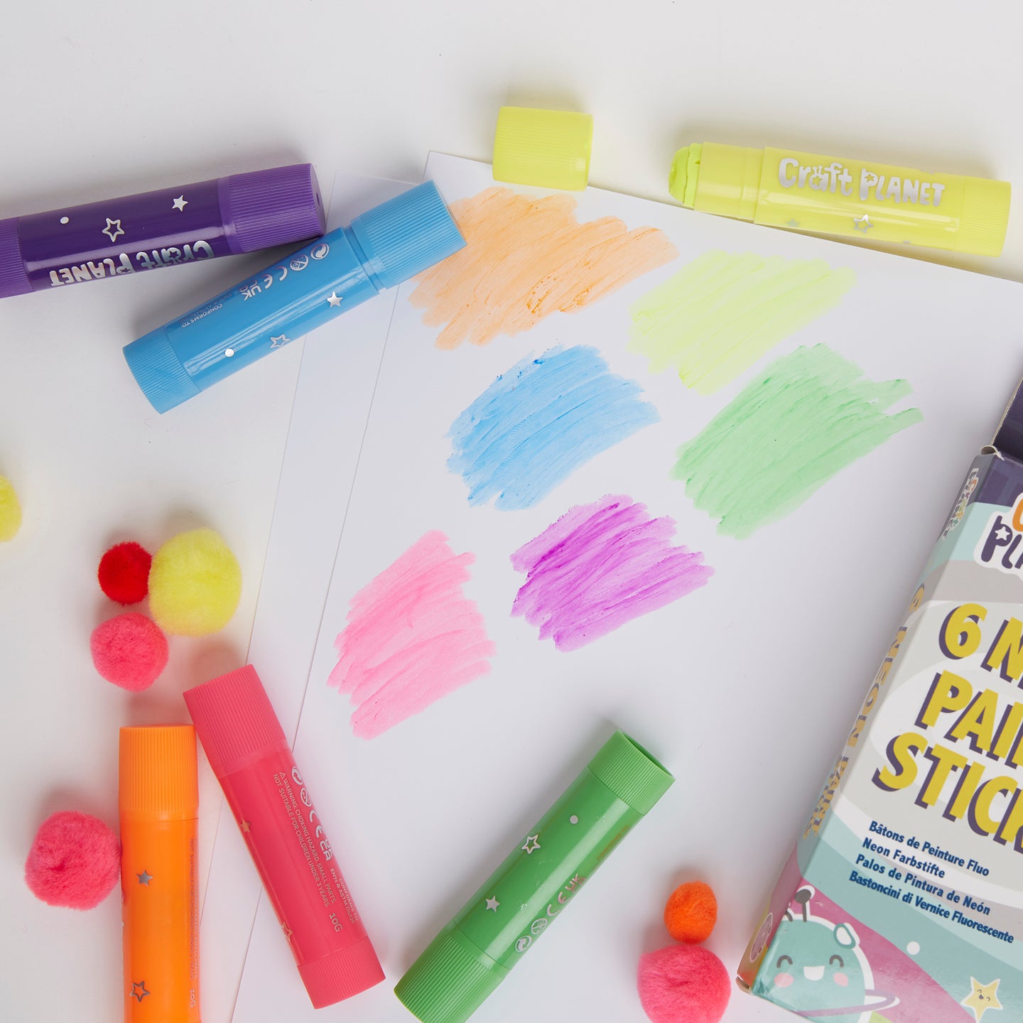 Craft Planet Neon Paint Pens - 6 Kids Washable Paint Sticks In Neon Colours - Perfect Paint Option For Kids, Toddlers, Baby, For Finger Painting, Poster Art, Handprints, Crafts & Window Art