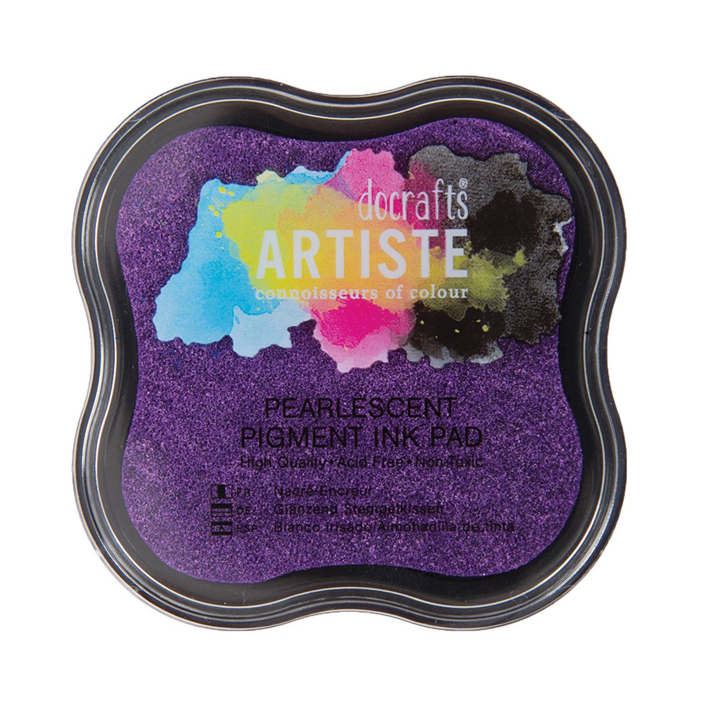 Artiste Pigment Pearlescent Violent Ink Pad For Stamping, Embossing Powders, Crafting Supplies, Highly Pigmented Use With Clear Stamps, Rubber Stamps, Ink Pads Are Safe Non-Toxic Acid-Free Stamptastic