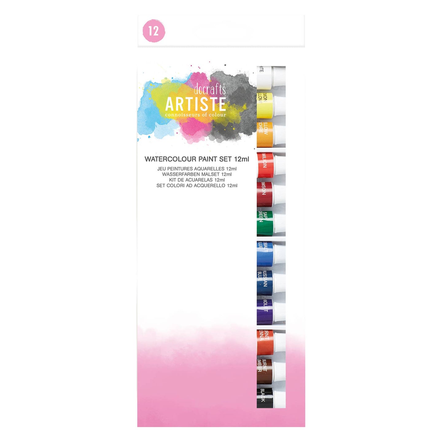 Artiste Watercolour Paint Set, Pack of 12, Multicoloured, 12ml, Ideal Art Supplies for Art Set, Adults and Kids, The Perfect Paint Set for Home, Combine with Paint Brush Set and Palette