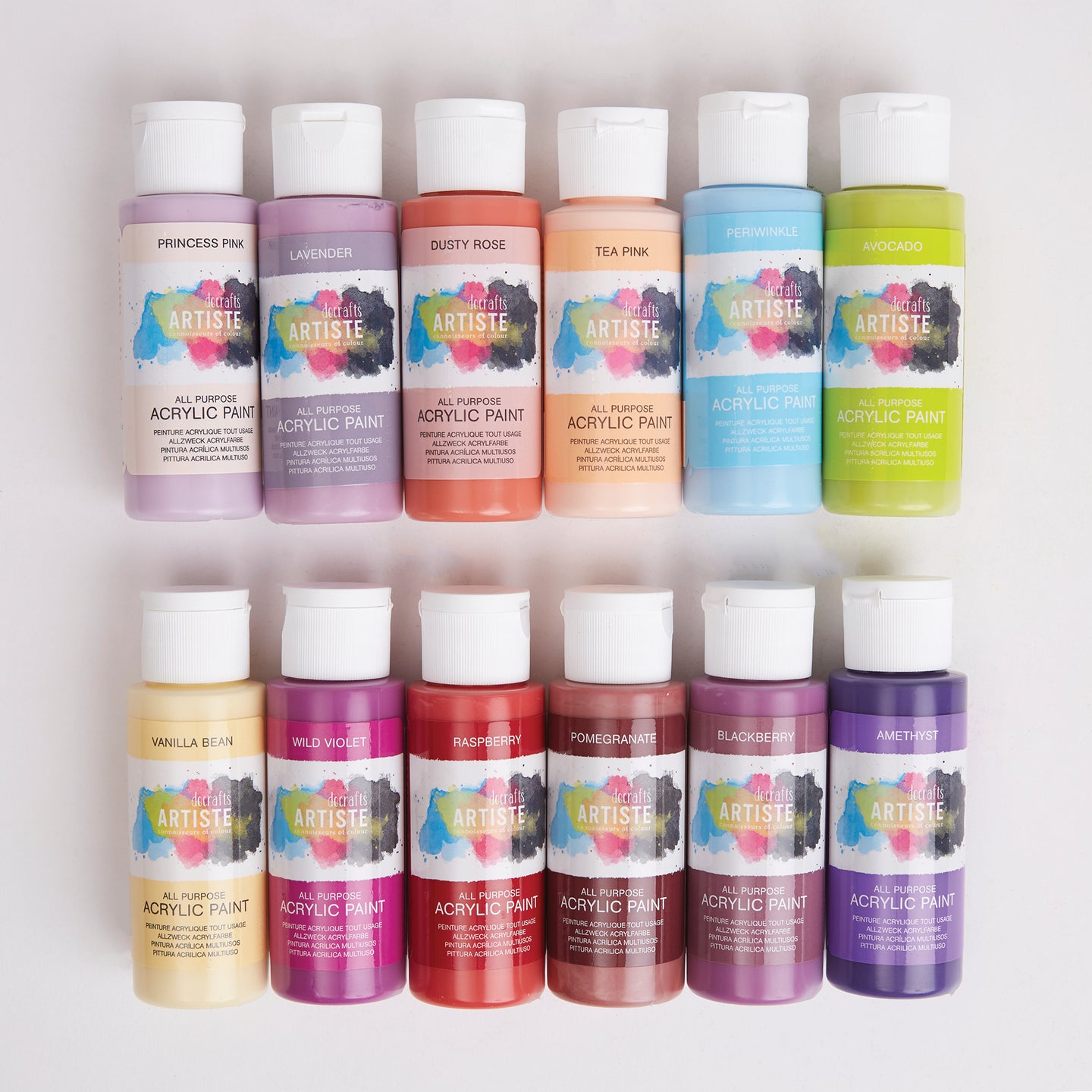 Artiste Acrylic Paint Set Pack Of 12x 59ml - Fashion Colours, Quick-Drying Professional Art And Hobby Craft Artists Paint, Water-Based Paints Cover Surfaces With Ease, Ideal For Travel Artists