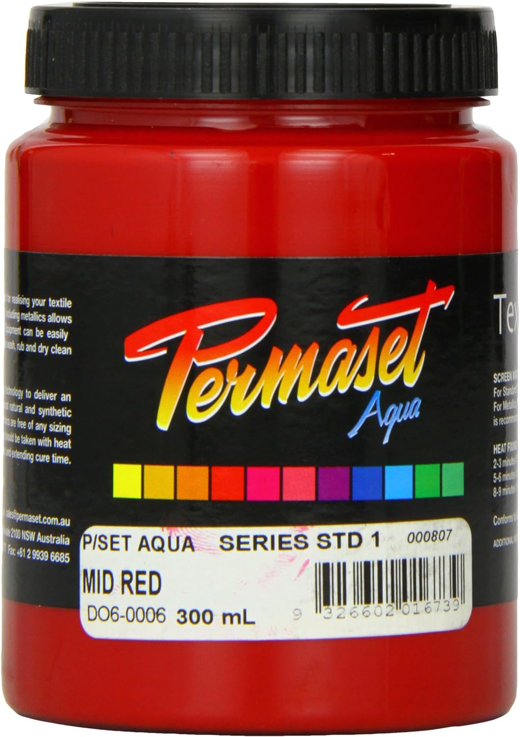 Permaset Aqua Standard 300ml Mid Red - Screen Printing Ink for Fabric - Ideal Screen Printing Kit for Home Office, Starter Kit, Fabric Paint, Screen Printer and other Fabric Ink