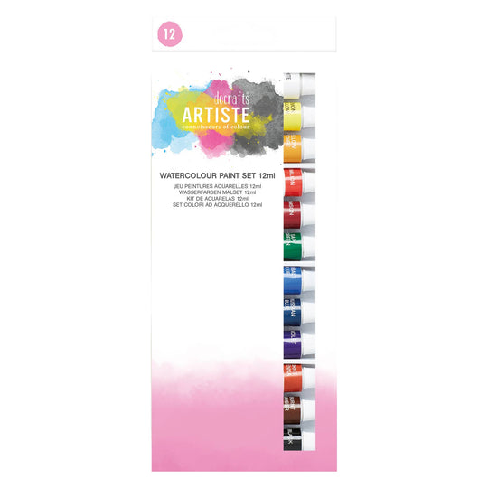 Artiste Watercolour Paint Set, Pack of 12, Multicoloured, 12ml, Ideal Art Supplies for Art Set, Adults and Kids, The Perfect Paint Set for Home, Combine with Paint Brush Set and Palette