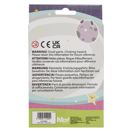 Craft Planet Neon Paint Pens - 6 Kids Washable Paint Sticks In Neon Colours - Perfect Paint Option For Kids, Toddlers, Baby, For Finger Painting, Poster Art, Handprints, Crafts & Window Art