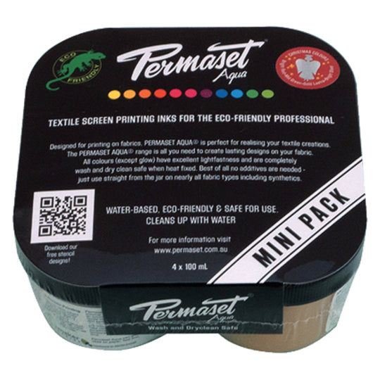 Permaset Aqua® Trial Set, Christmas Colours - Festive Screen Printing Ink for Fabric - Ideal Screen Printing Kit for Home Office, Starter Kit, Fabric Paint, Screen Printer and other Fabric Ink