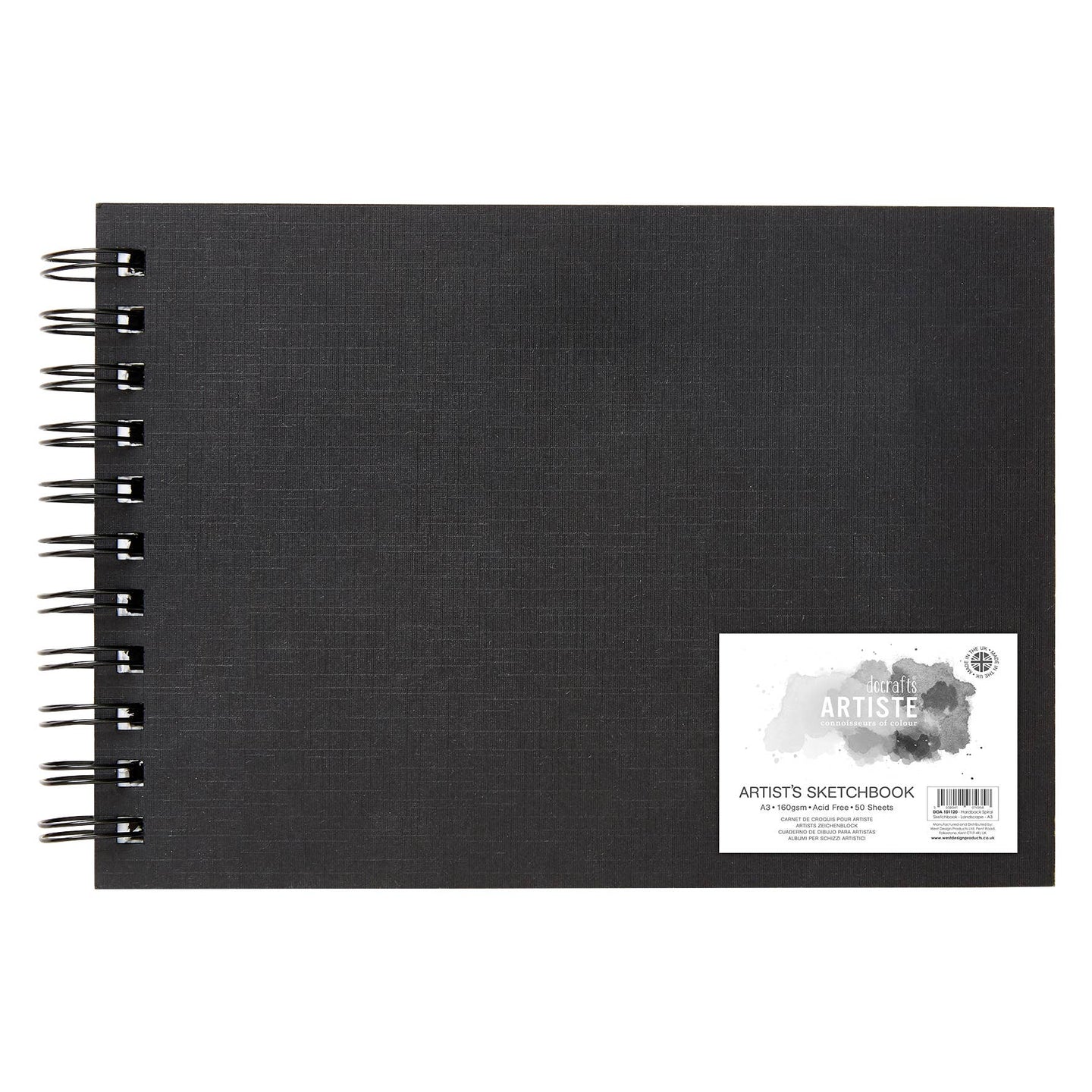 Artiste Landscape Wiro Sketchbook Hardback A3 160gsm 50 Sheets - Perfect Sketch Book for Art & Drawing, Ideal for Scrapbook Ideas & Art Supplies, A3 Sketchbook Paper Pad - Drawing Pad, Drawing Book