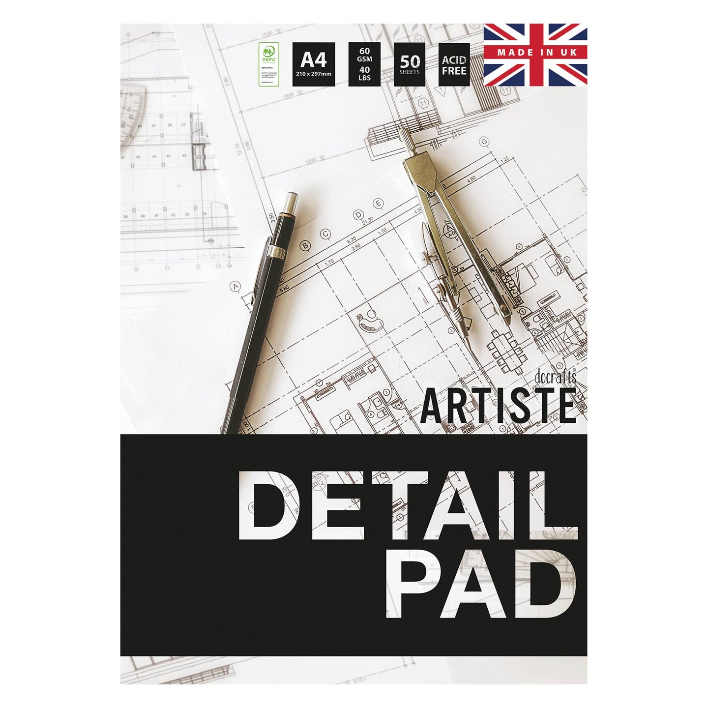 Artiste Detail Paper Pad, 60gsm, 50 Sheets, White, A4, Ideal Sketchbook for Adults, Art Notebook for Artists and Kids, Creative Book for Drawing, Dressmaking Paper and Sketching Paper