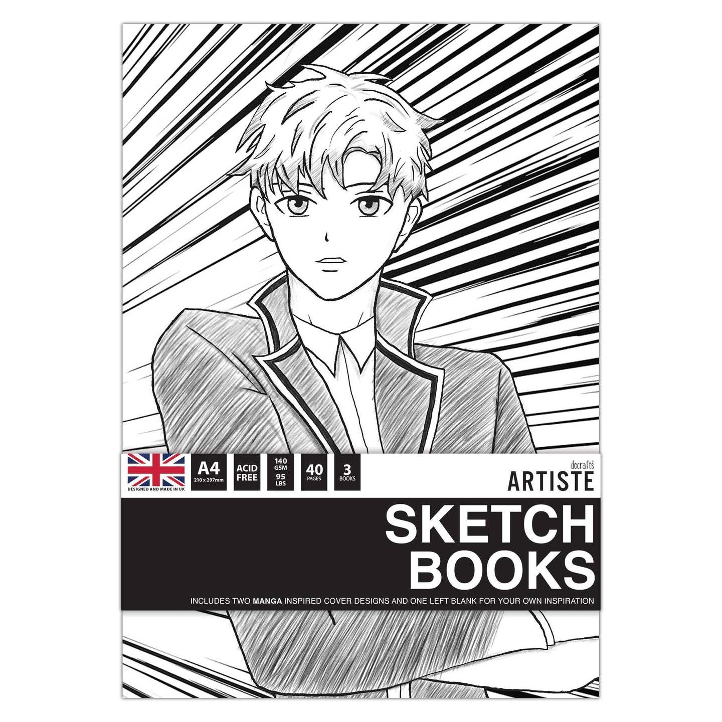 Artiste A4 Sketchbooks - Manga Notebooks - Pack of 3, For Drawing, Sketching, Doodling, Writing And Scrapbook Designs With Mixed Media, Pen, Ink, Painting And More