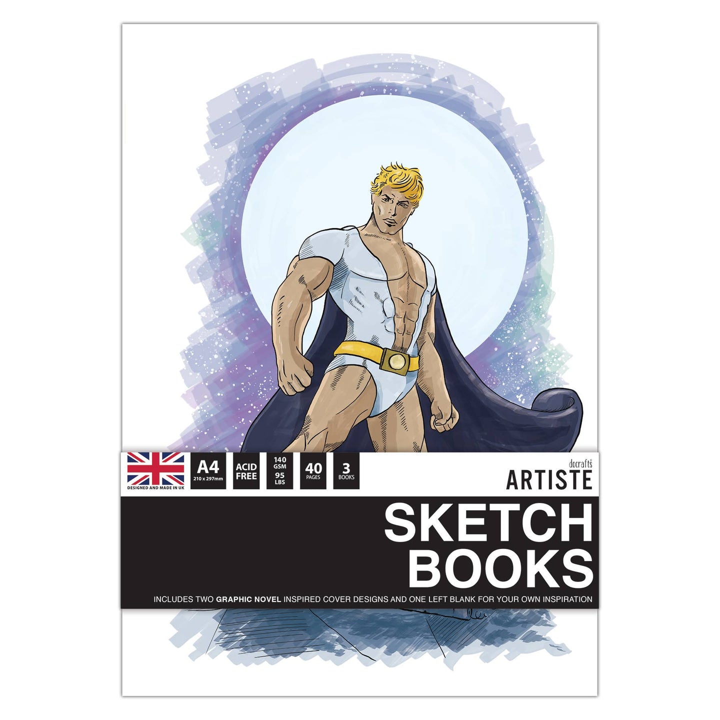 Artiste A4 Sketchbooks - Graphic Novel Notebooks - Pack of 3, For Drawing, Sketching, Doodling, Writing And Scrapbook Designs With Mixed Media, Pen, Ink, Painting And More