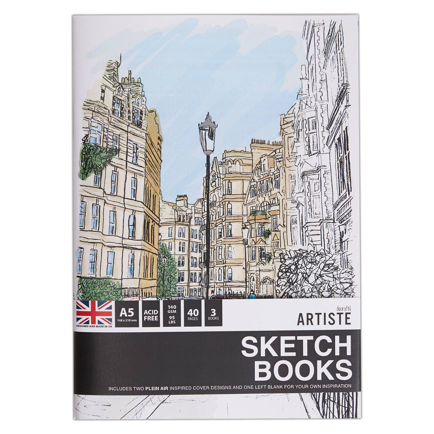 Artiste A5 Sketchbooks - Plein Air Notebooks - Pack of 3 For Drawing, Sketching, Doodling, Writing And Scrapbook Designs With Mixed Media, Pen, Ink, Painting And More