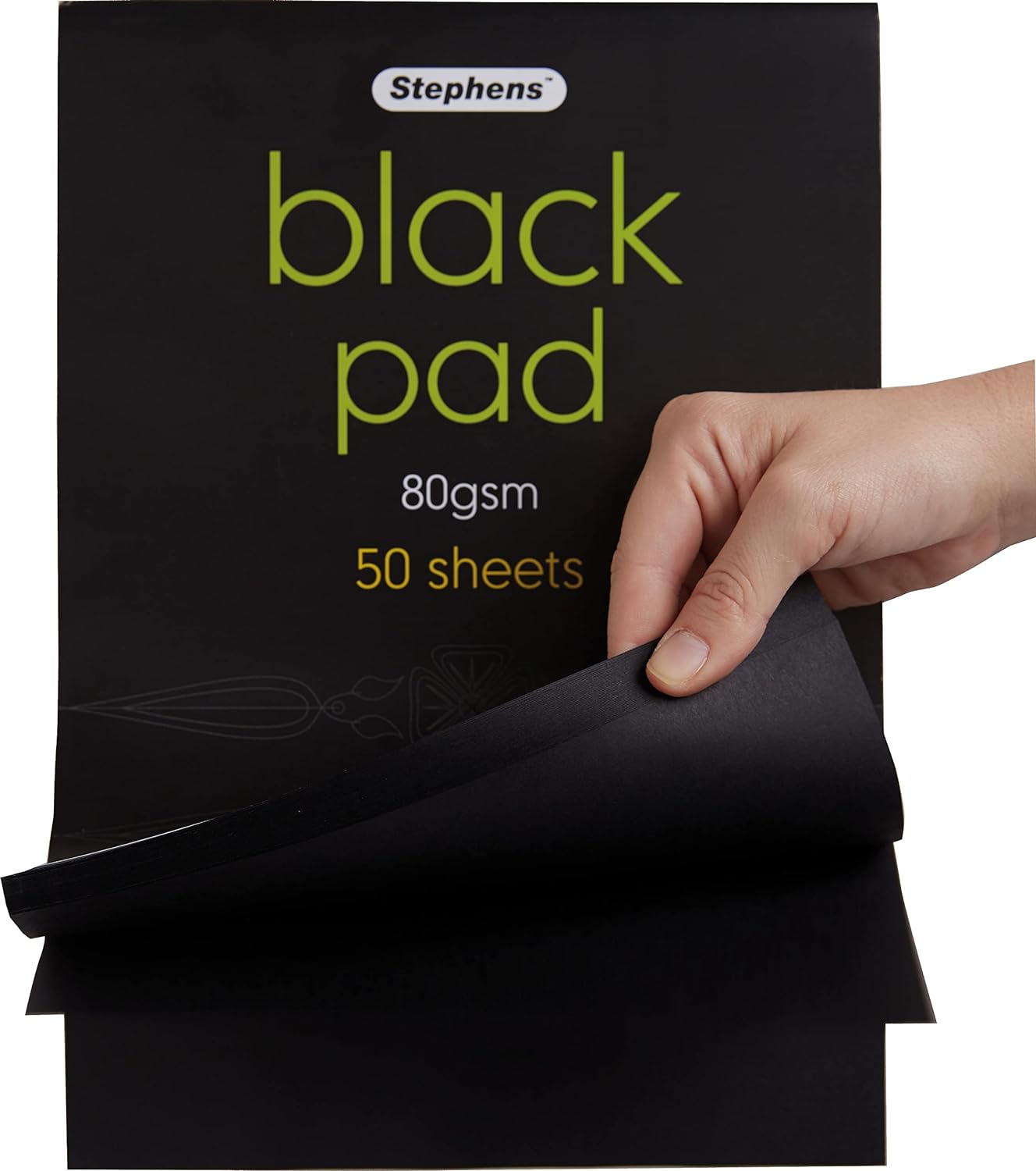 Stephens Black Coloured Paper Pad A4 80gsm 50 Sheets, Makes The Perfect Sketch Book, Craft Pad, Paint Pad, Notebook, Bullet Journal, Scrapbook And Colouring Book, For Home School And Office
