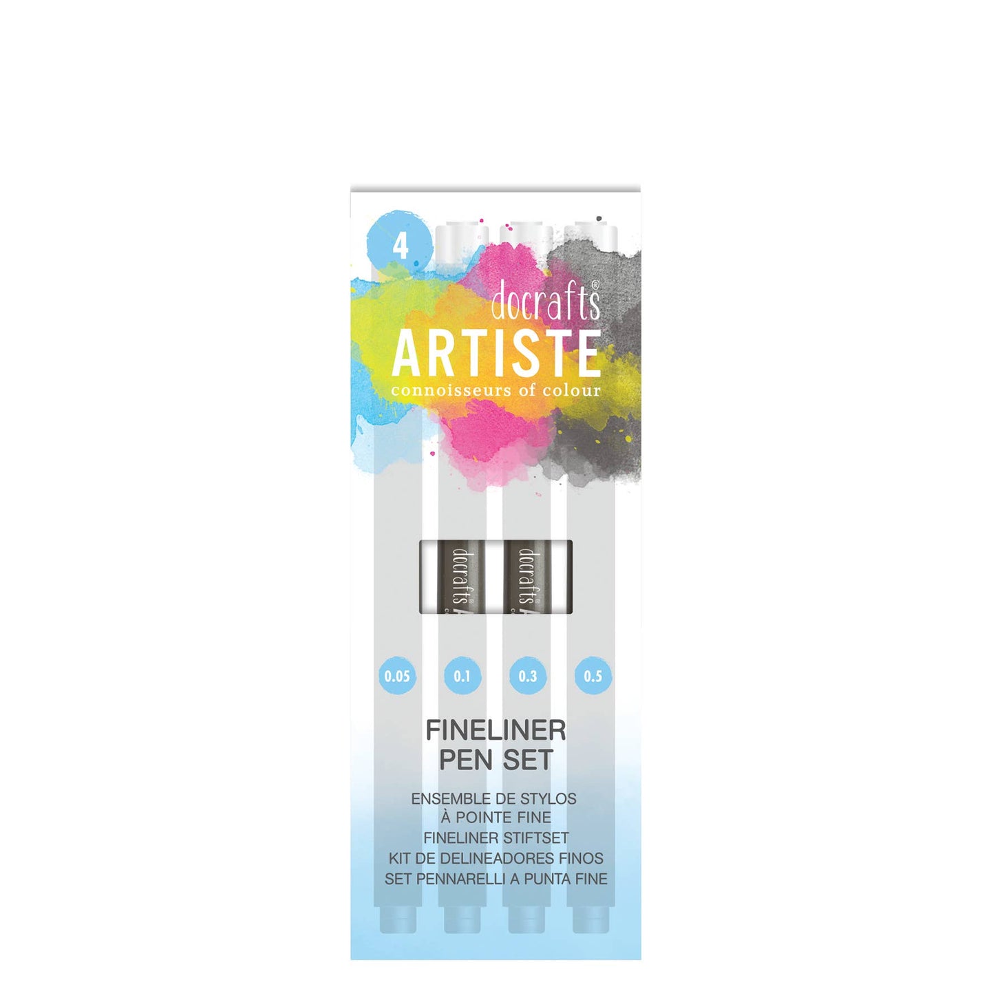 Artiste Black Fineliners, Black, Pack of 4, Add to your Art Supplies and Stationery Set, Black Fineliner Pens for your Art Projects and Linework, Line Art Colouring Pens in Black