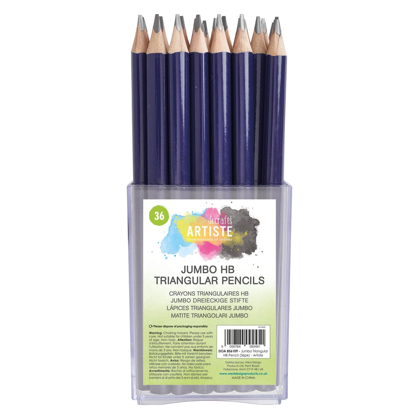 Artiste Jumbo Triangular HB Pencil, Grey, Tub of 36, Sketching Pencil Art Supplies for your Pencil Case and Sketch Book, Ideal Pencils for Drawing and Filling your Sketch Pad, HB Pencils for Art
