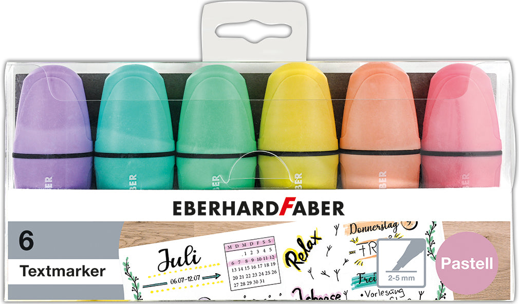 Eberhard Faber Mini Highlighters Pastel Colour, Box of 6, Coloured Pens, Marking, Document, Books, School, Work, University, Office, Teacher Student Supplies, Stationery Set, Party Bag Fillers
