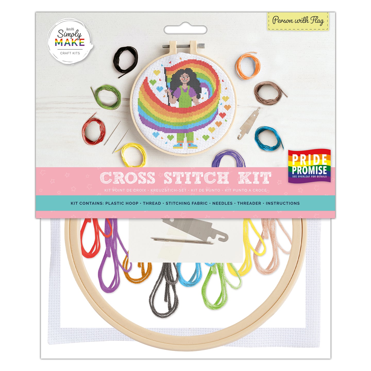 Simply Make Cross Stitch Kit, Person with flag, Multicoloured, Single Craft Kit