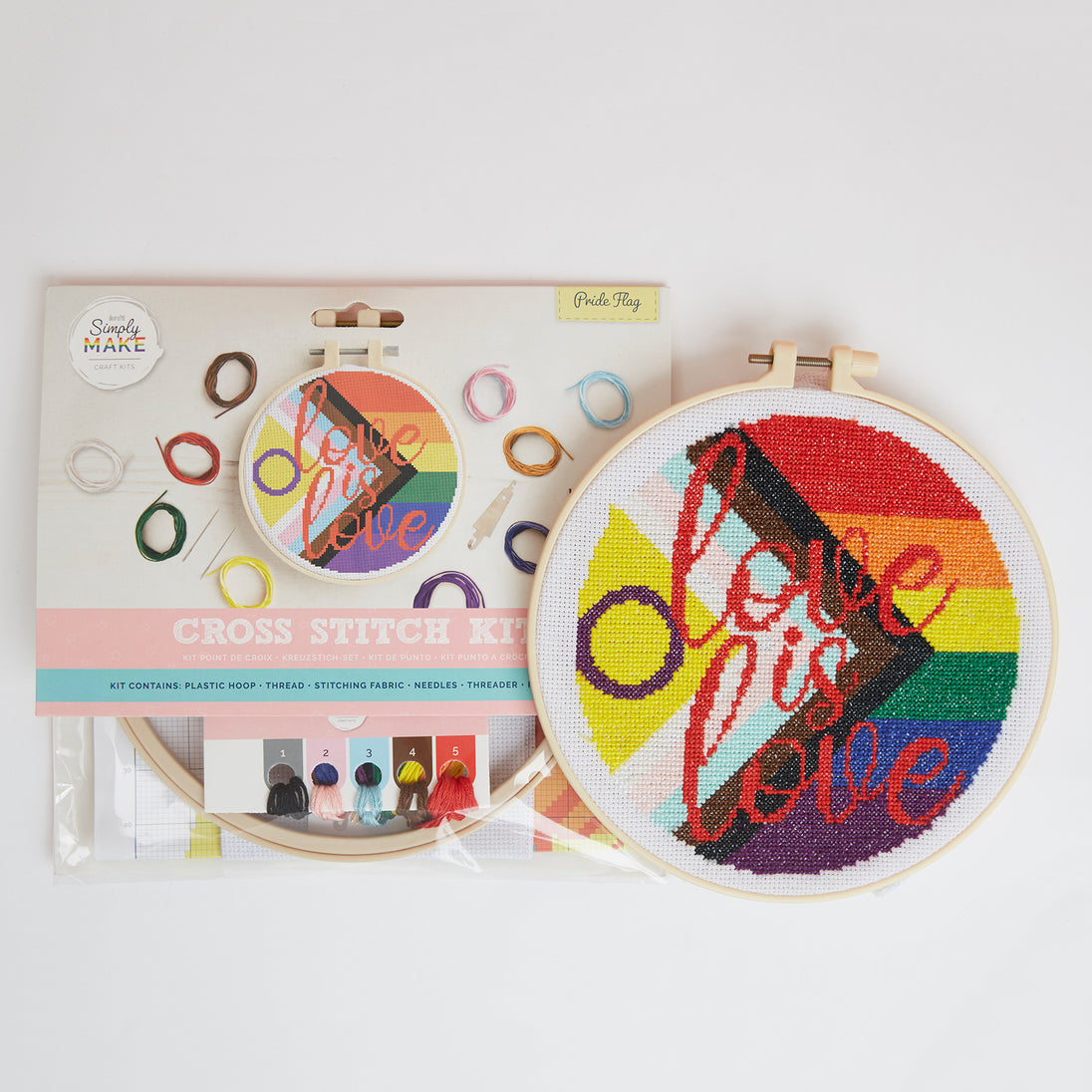Simply Make Cross Stitch Kit, Pride Flag, Multicoloured, Single Craft Kit