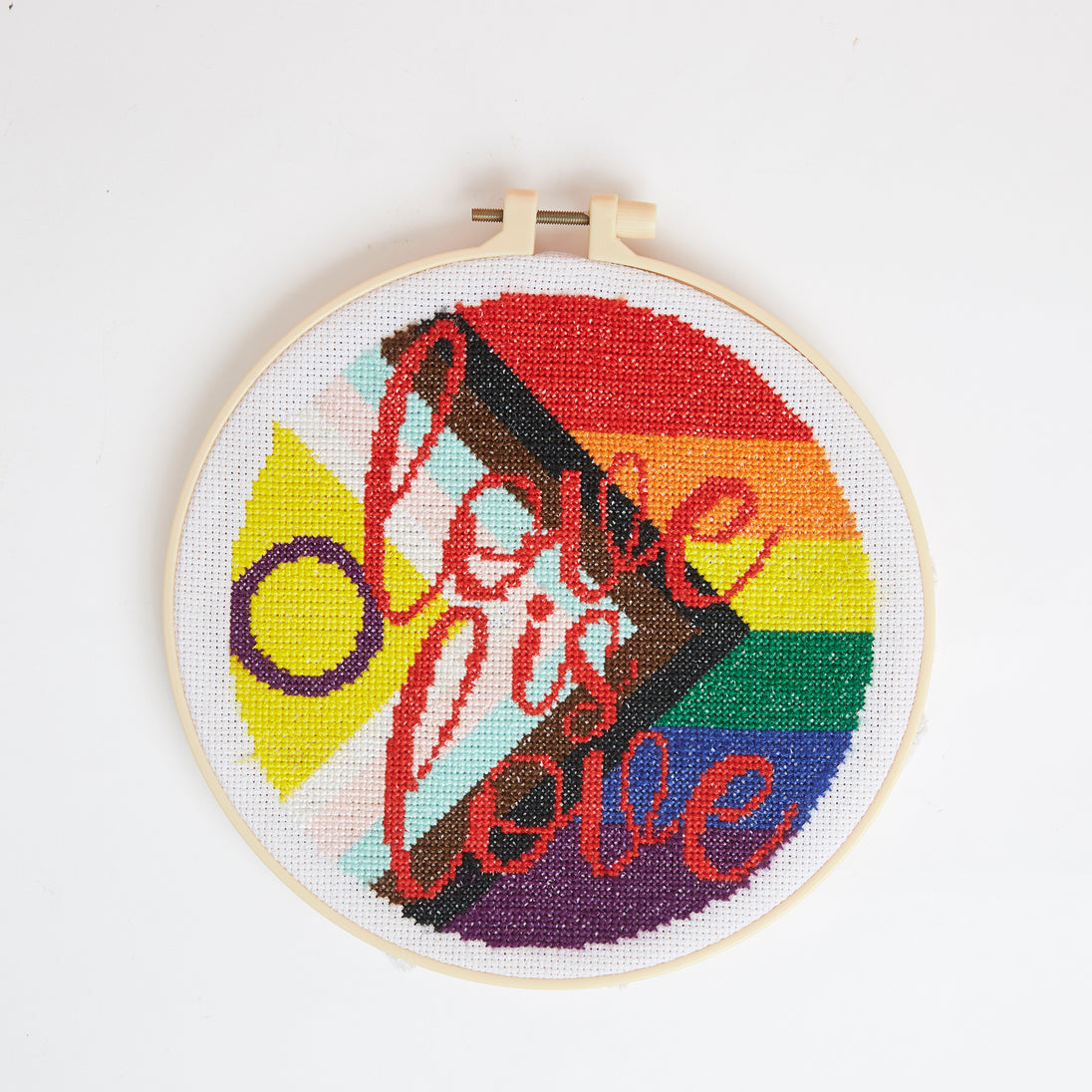 This kit contains everything that you need to create a great finished project in a Pride Flag design. Includes instruction and cross stitch chart,200mm plastic hoop, up to 8 x threads,aida fabric, 2 x needles, and threader.