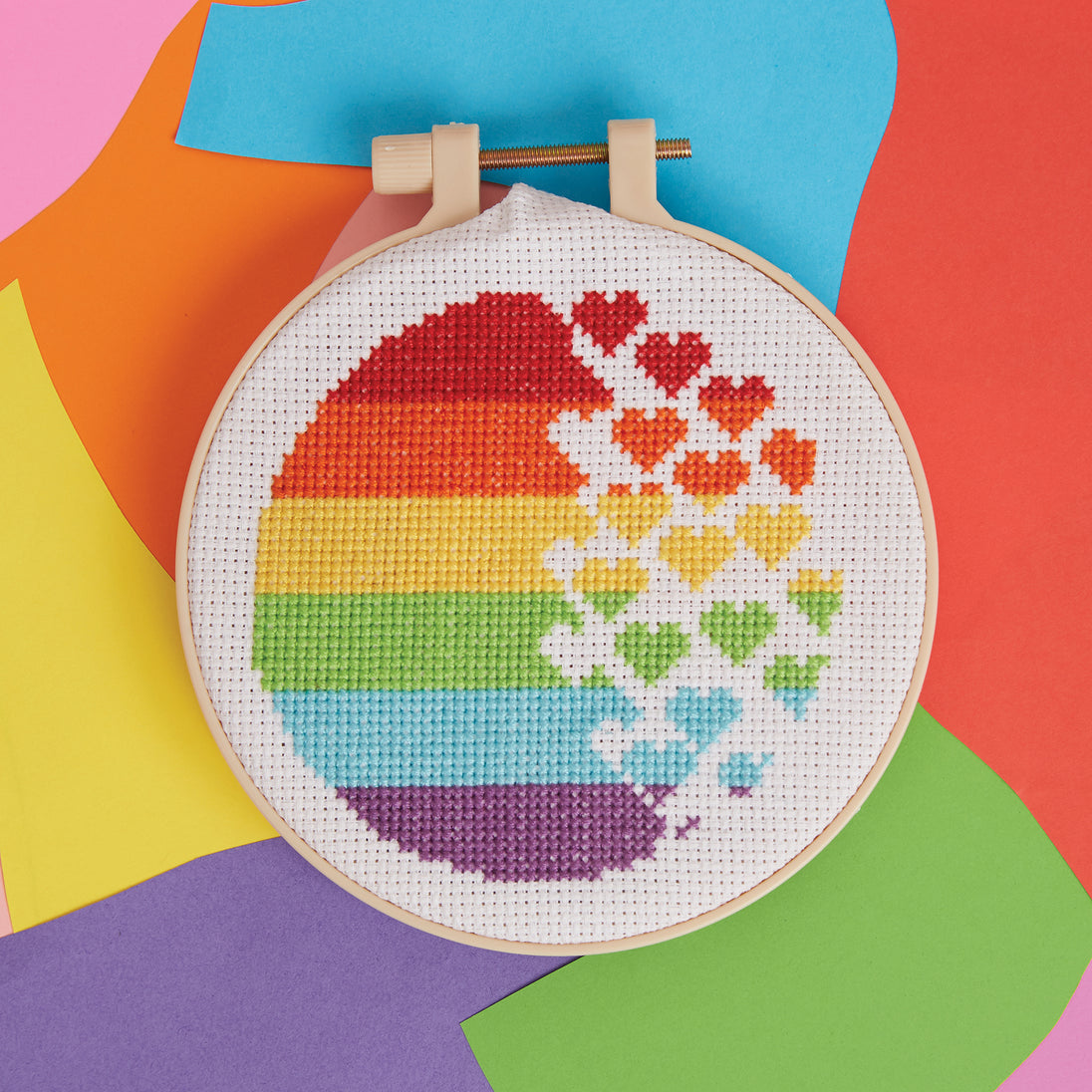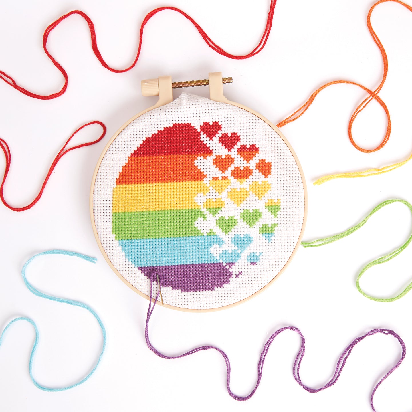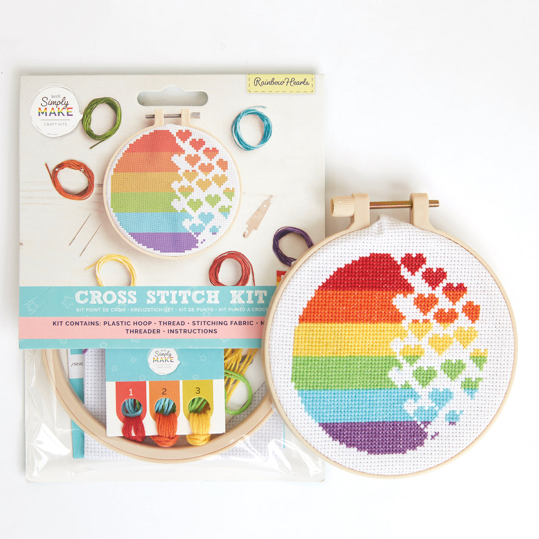 Simply Make Cross Stitch Kit, Rainbow Hearts, Multicoloured, Single Craft Kit