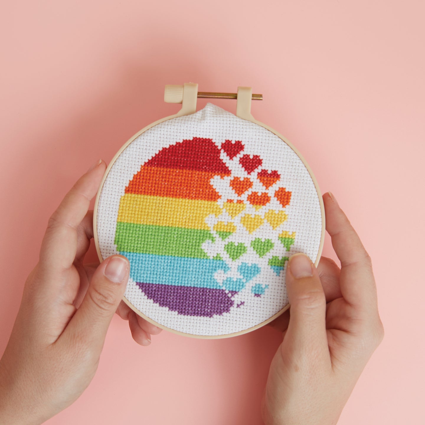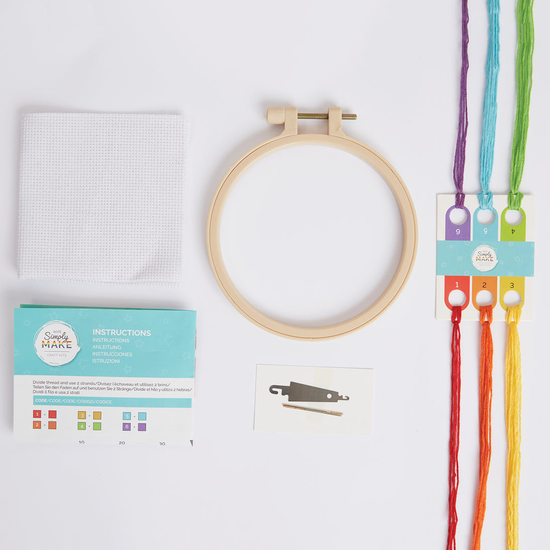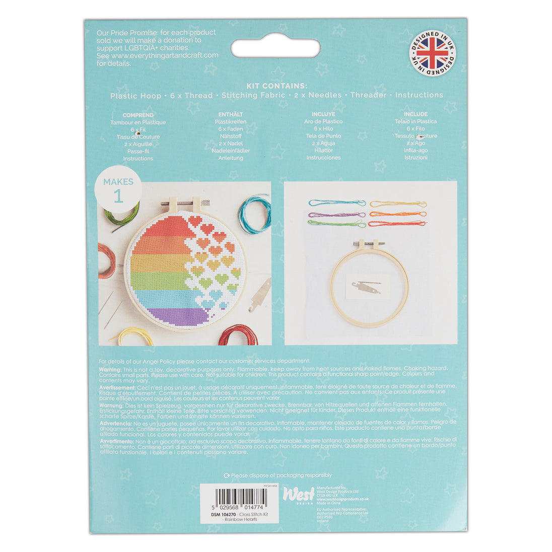 Simply Make Cross Stitch Kit, Rainbow Hearts, Multicoloured, Single Craft Kit