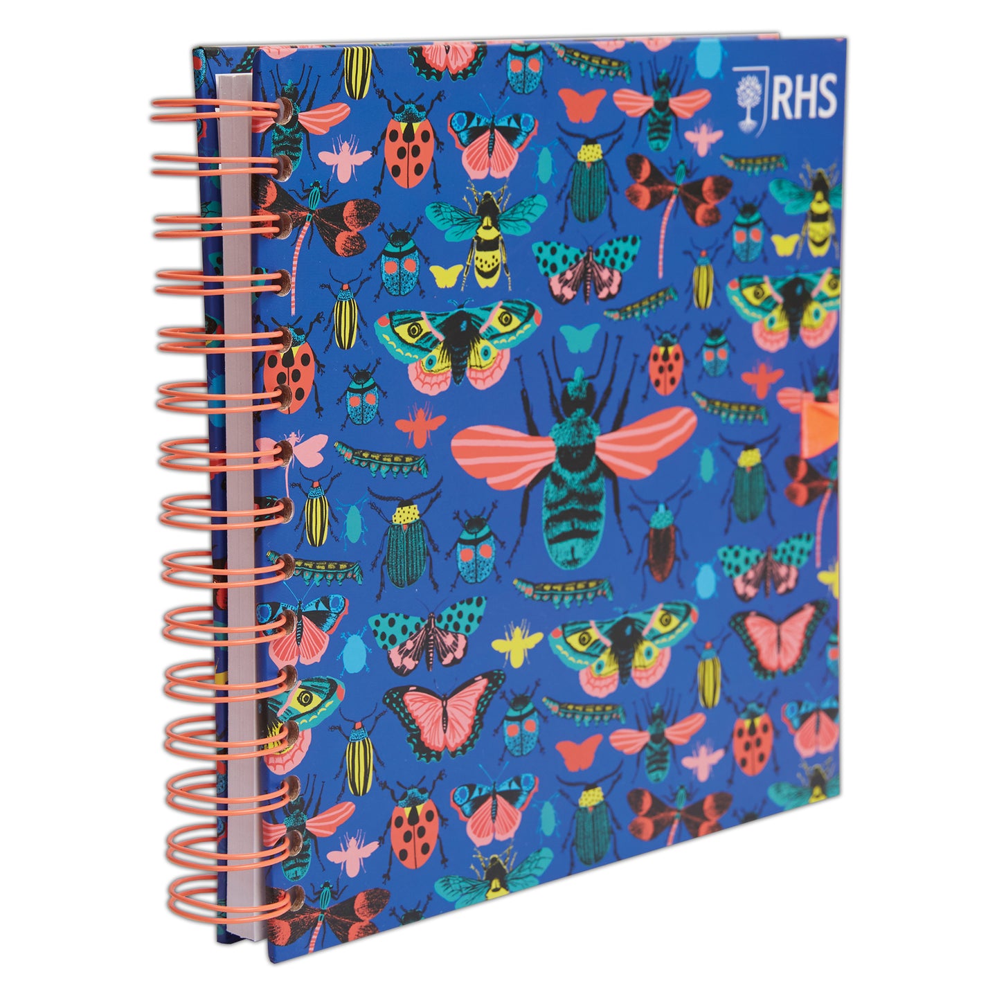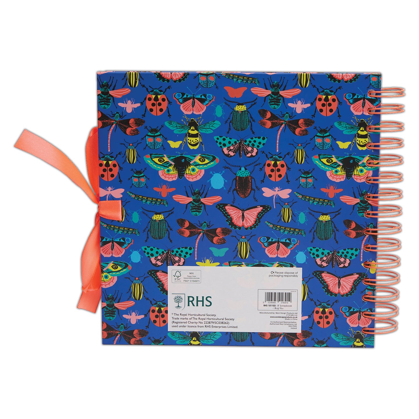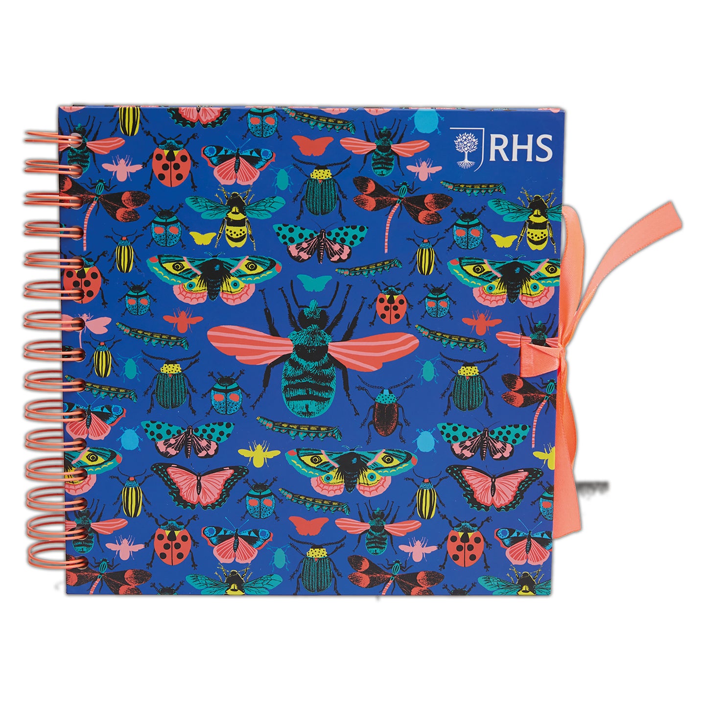 RHS The Royal Horticultural Society Wiro Bound Hardback Scrapbook, 40 Pages, White Paper, I Bug You, 8" x 8", Multicoloured, With Coordinating Ribbon Closure And Wire Colours