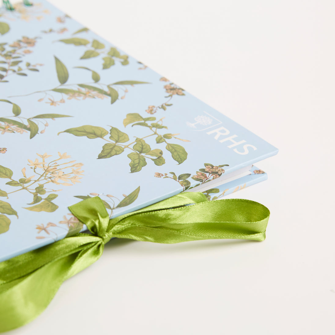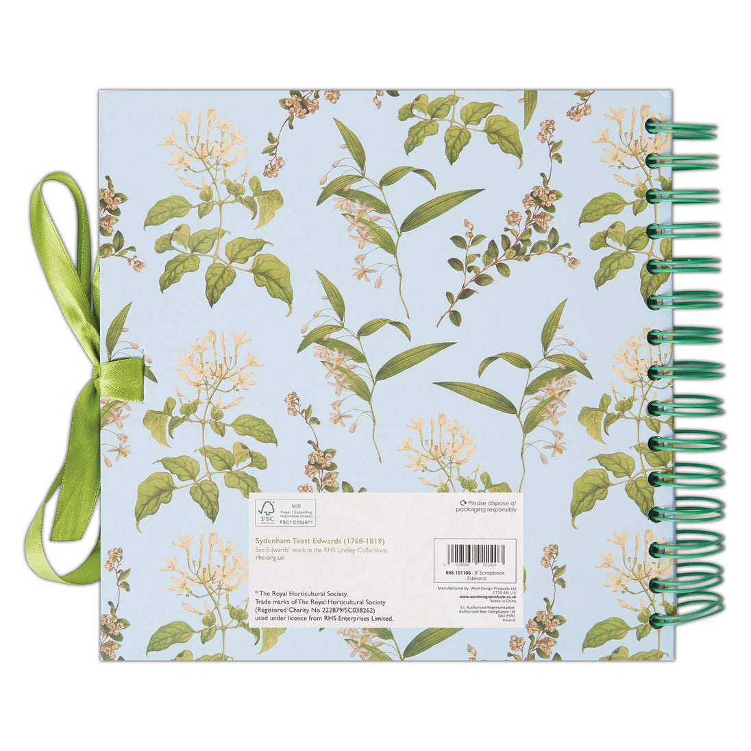 RHS The Royal Horticultural Society Wiro Bound Hardback Scrapbook, 40 Pages, White Paper, Edwards, 8" x 8", Multicoloured, With Coordinating Ribbon Closure And Wire Colours