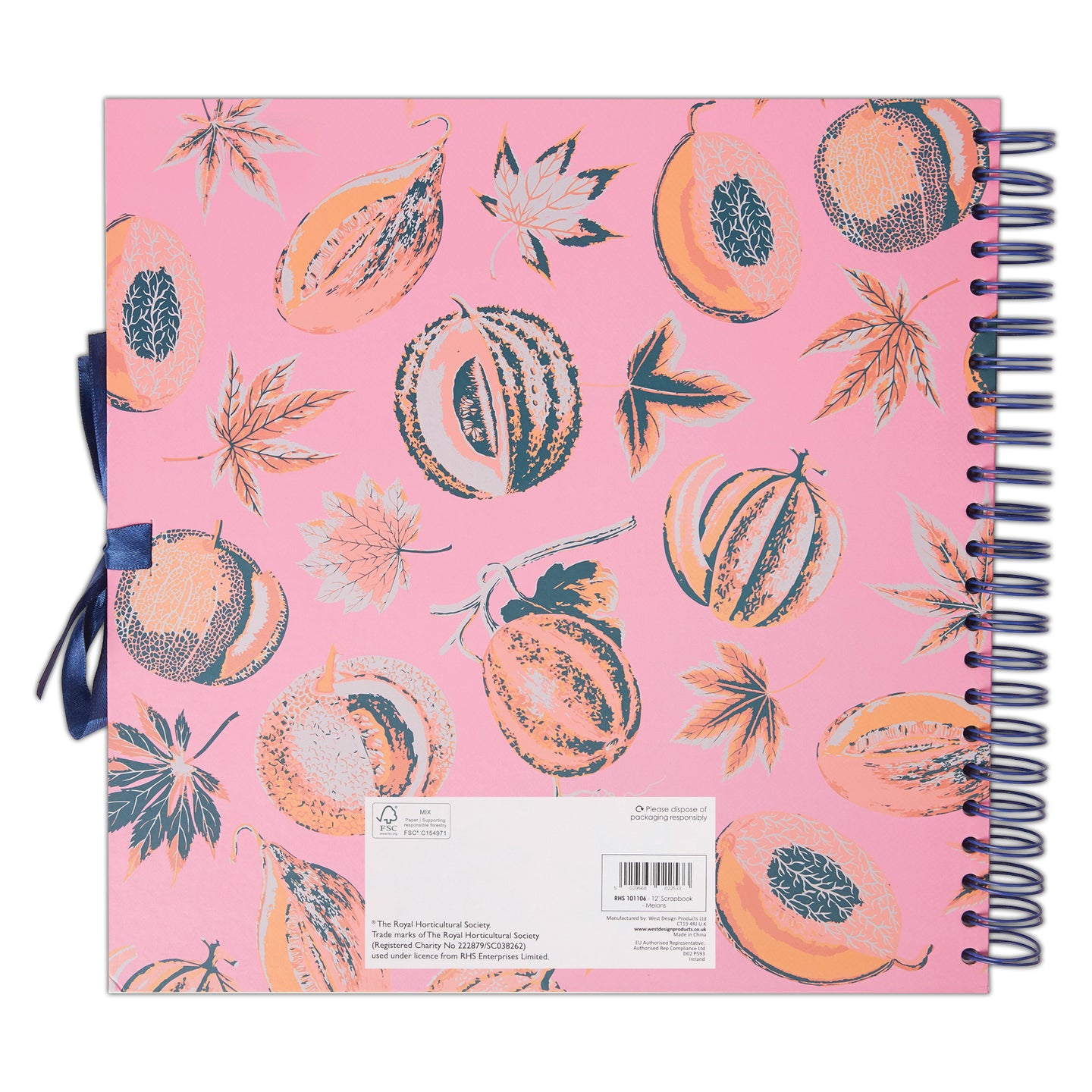 RHS The Royal Horticultural Society Wiro Bound Hardback Scrapbook, 40 Pages, White Paper, Melons, 12" x 12", Multicoloured, With Coordinating Ribbon Closure And Wire Colours
