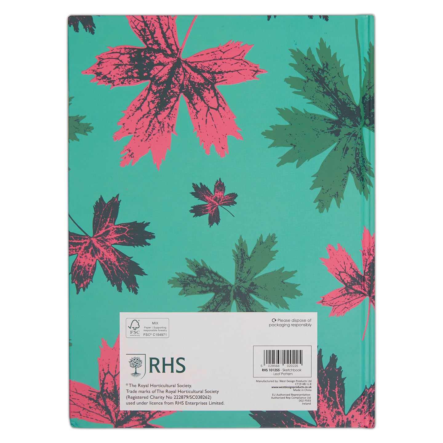 RHS The Royal Horticultural Society 160 Page Hardbound Sketchbook (90gsm), Leaf Pattern, A5, Multicoloured, For Sketching, Drawing, Scrapbooking, Notes, Ideas, Painting, Acrylic, Watercolour