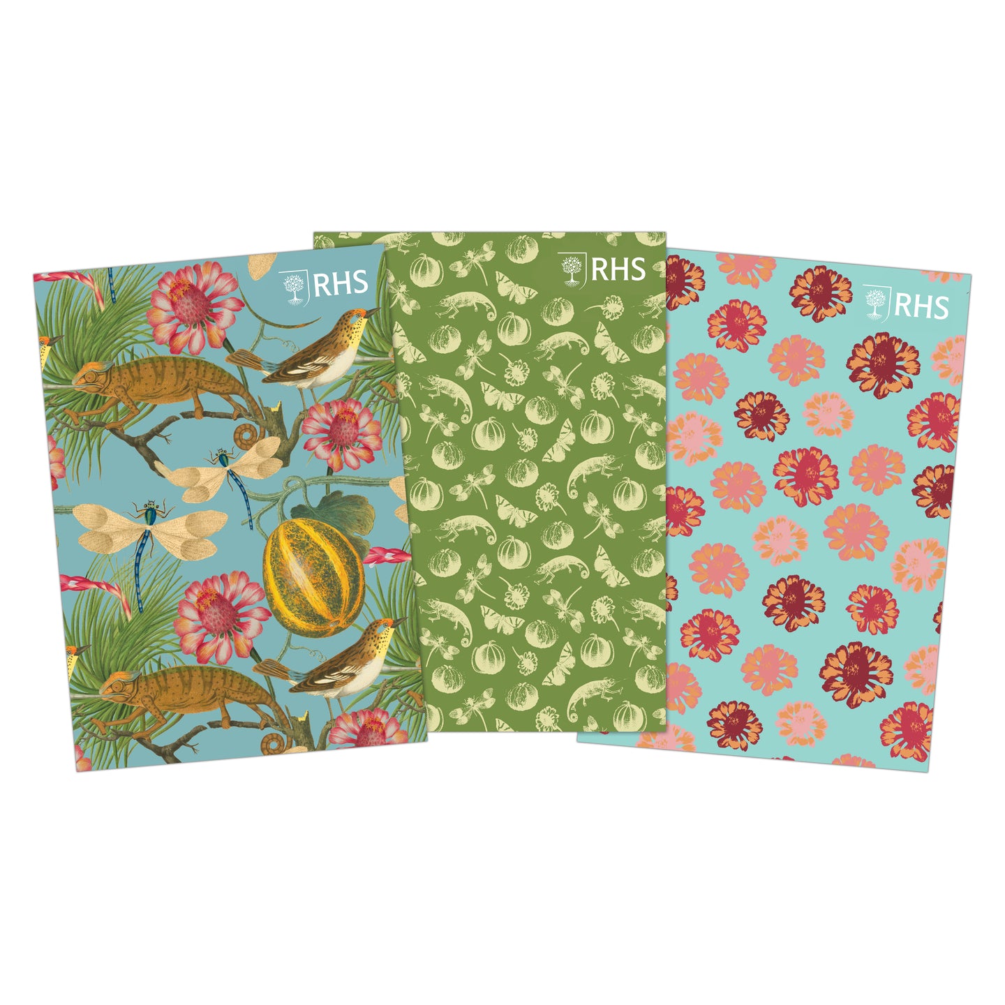 RHS A5 Sketchbooks, Pack of 3, Tropical, For Drawing, Sketching, Doodling, Writing And Scrapbook Designs, With Mixed Media, Pen, Ink, Painting And More, Art, Craft Supplies