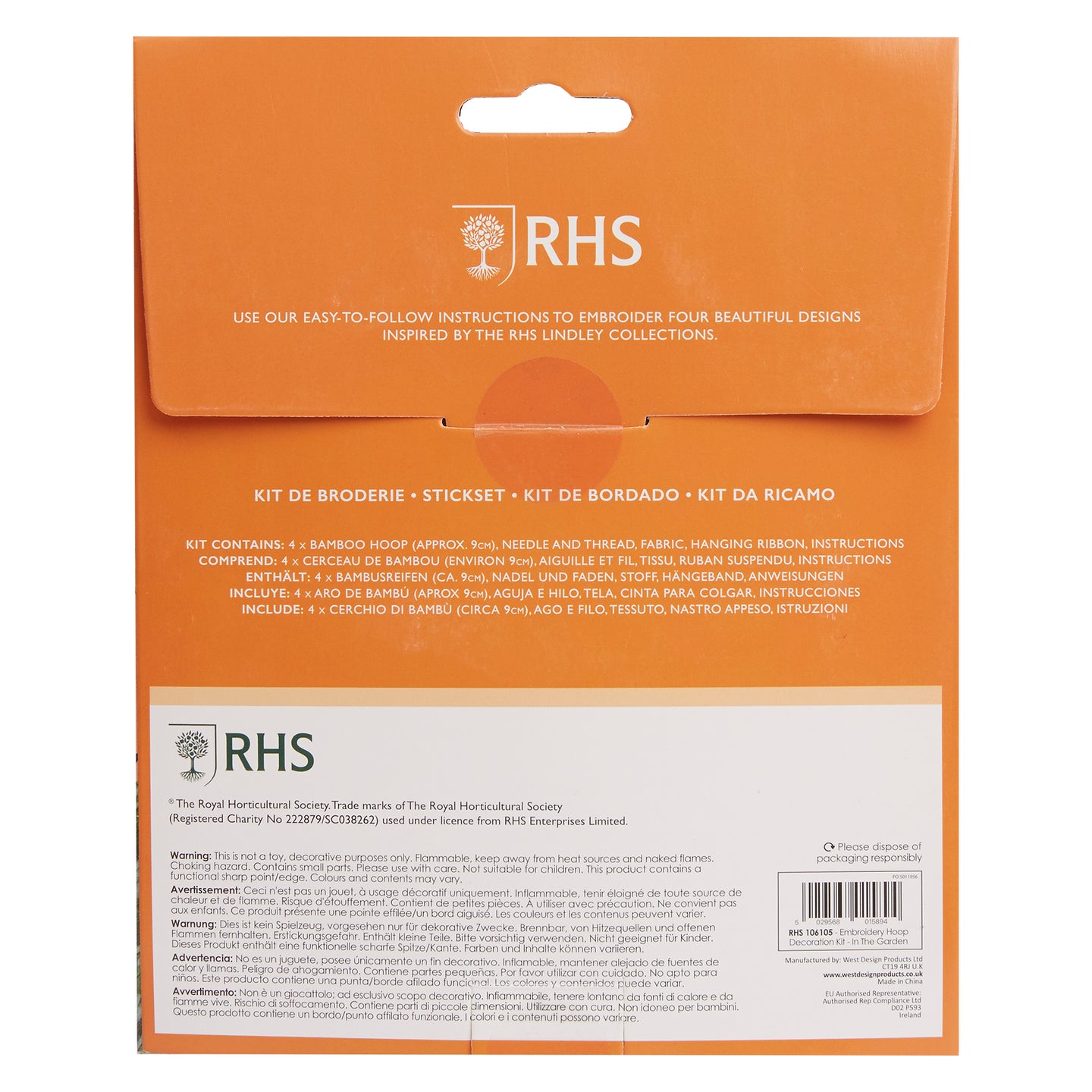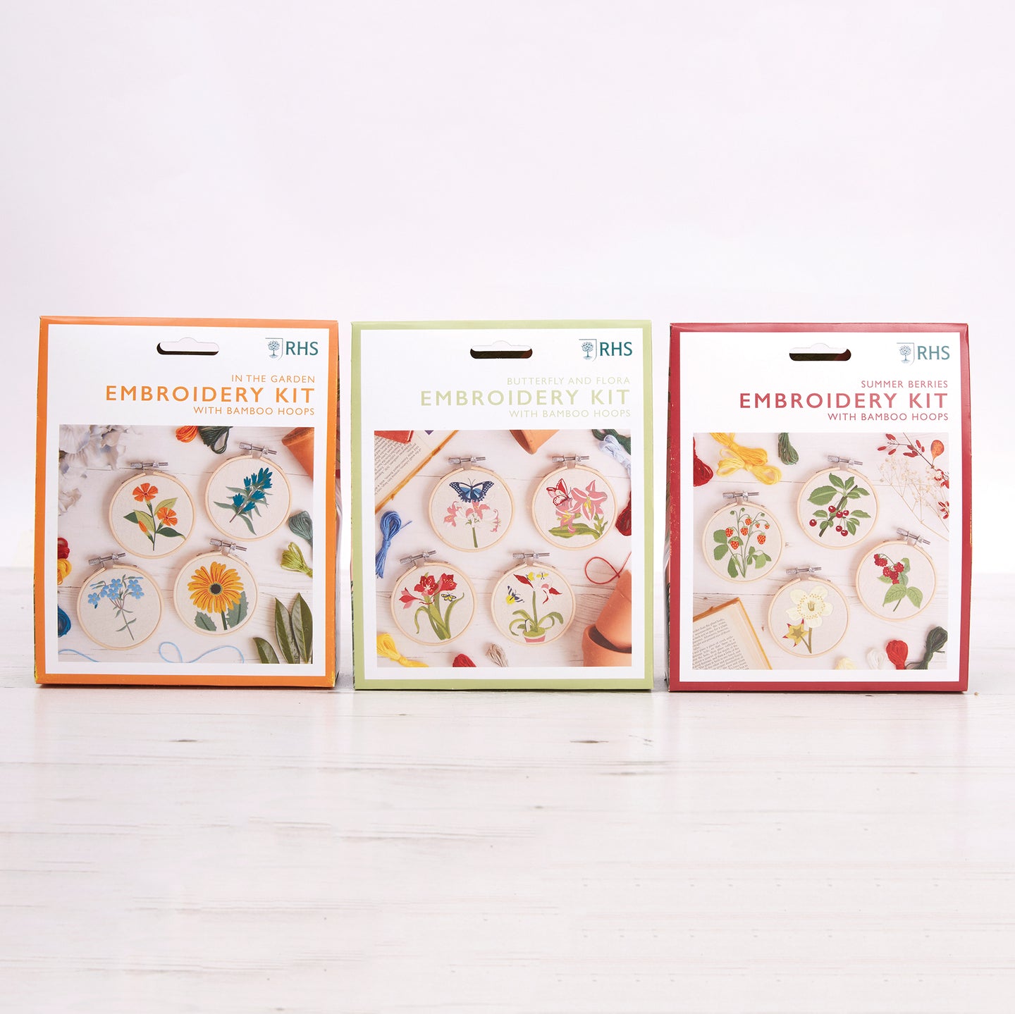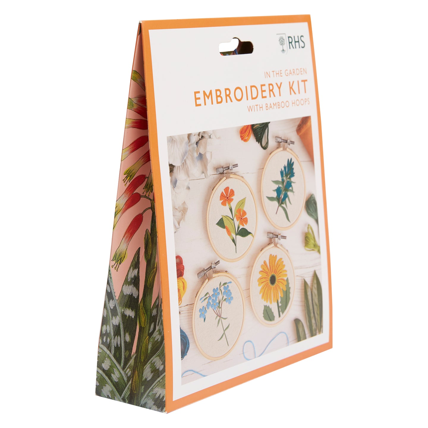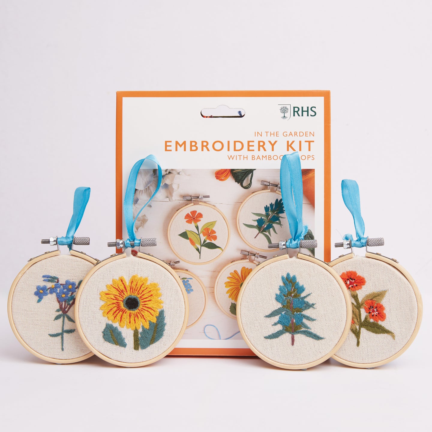 RHS The Royal Horticultural Society Embroidery Hoop Decoration Kit, In the Garden, Pack Of 4, Includes Bamboo Embroidery Hoop, Printed Fabric, Embroidery Threads, Needles, Threader, Instructions