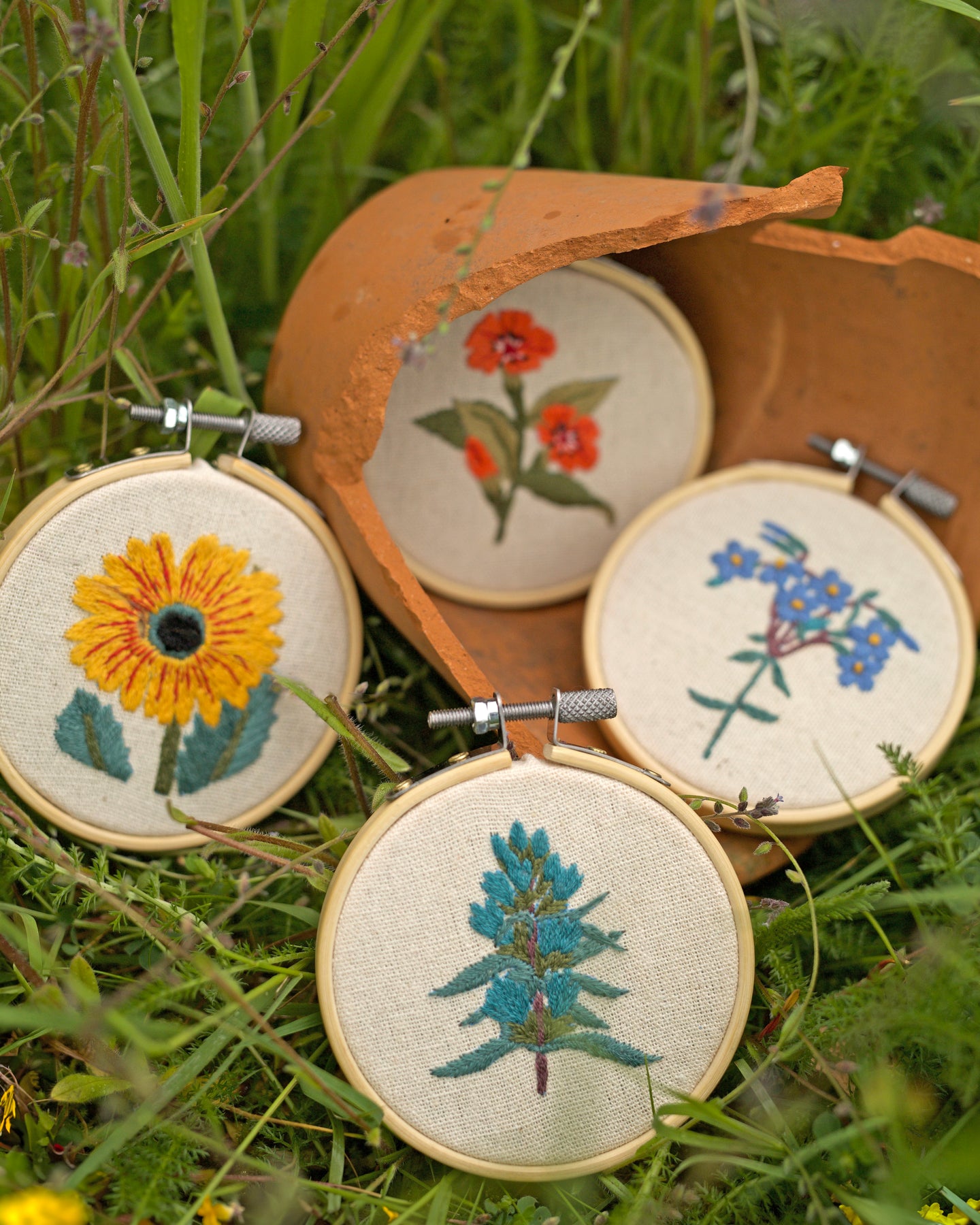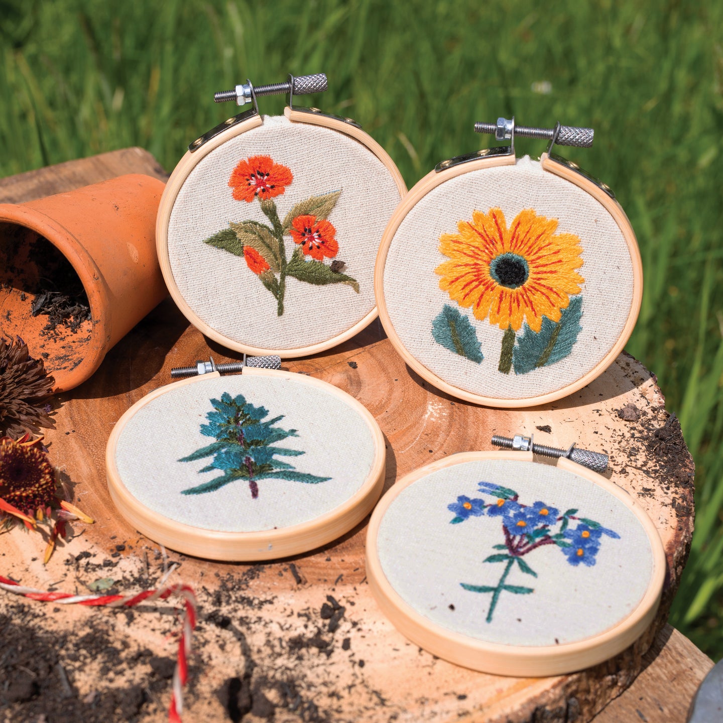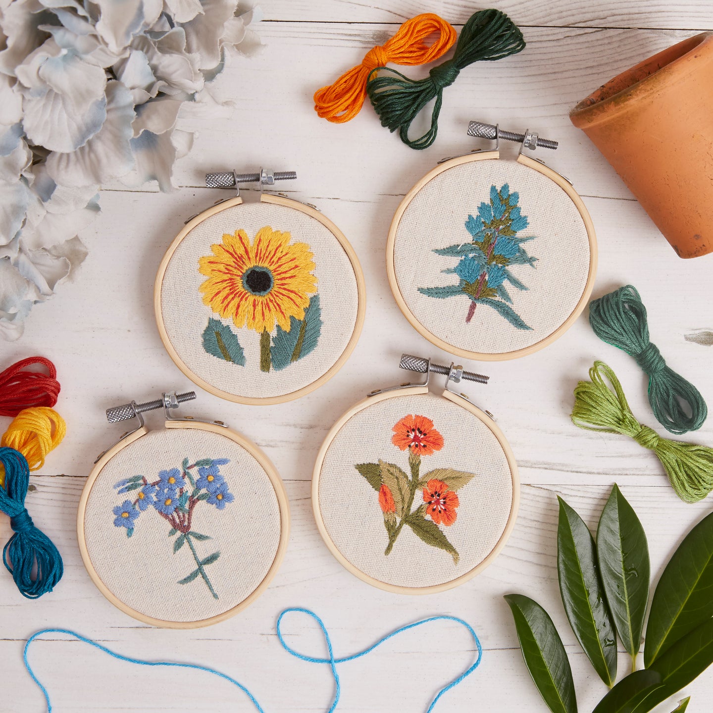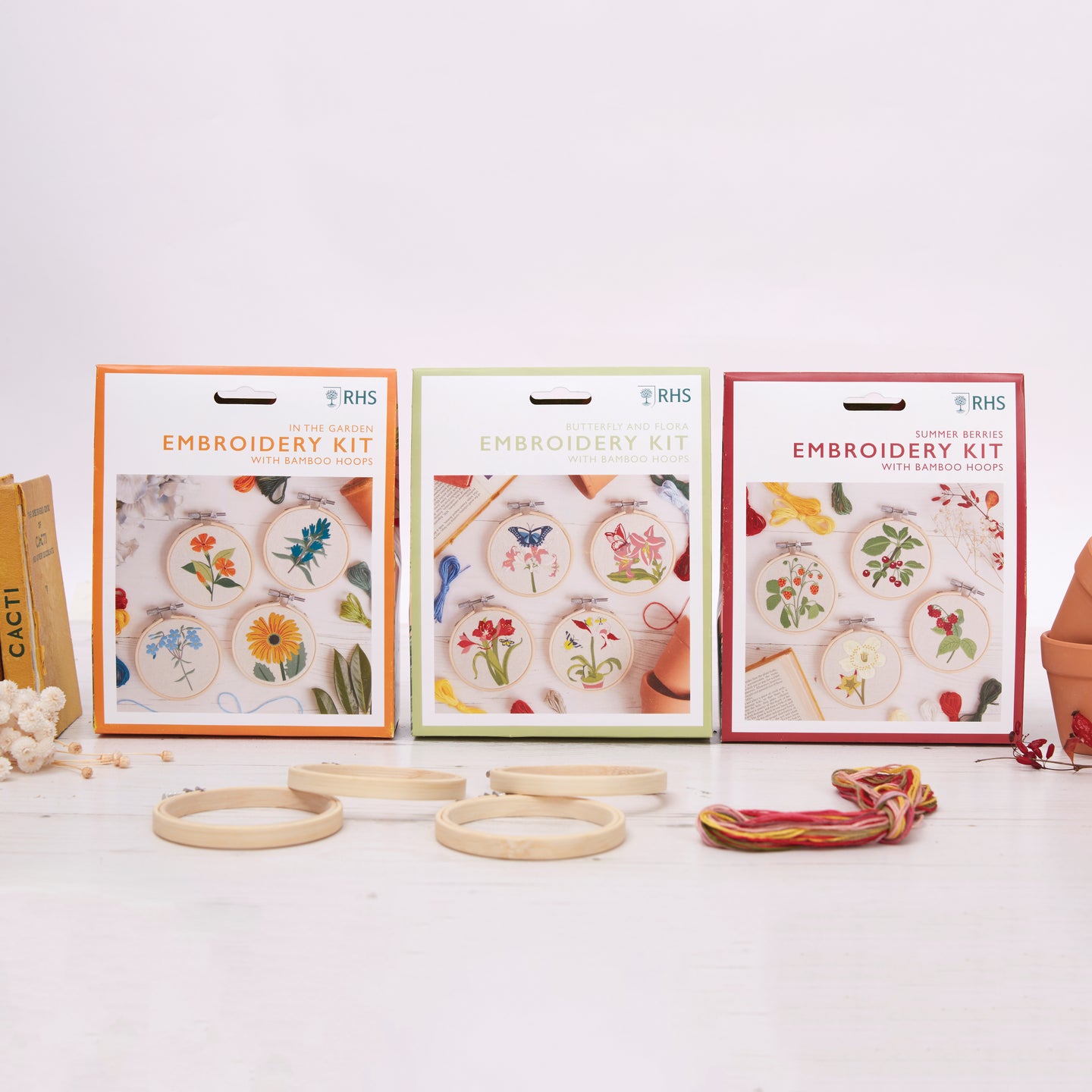 RHS The Royal Horticultural Society Embroidery Hoop Decoration Kit, In the Garden, Pack Of 4, Includes Bamboo Embroidery Hoop, Printed Fabric, Embroidery Threads, Needles, Threader, Instructions