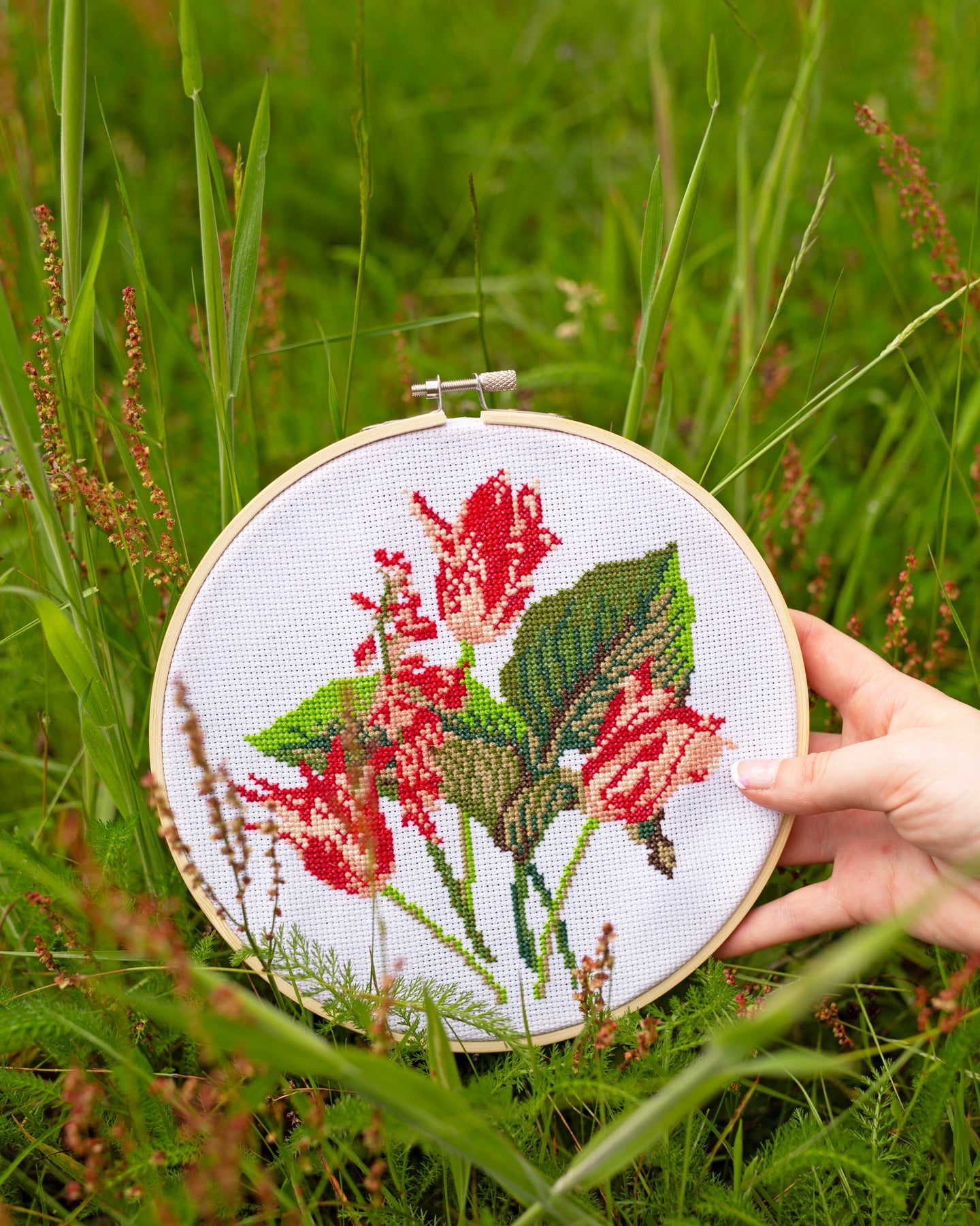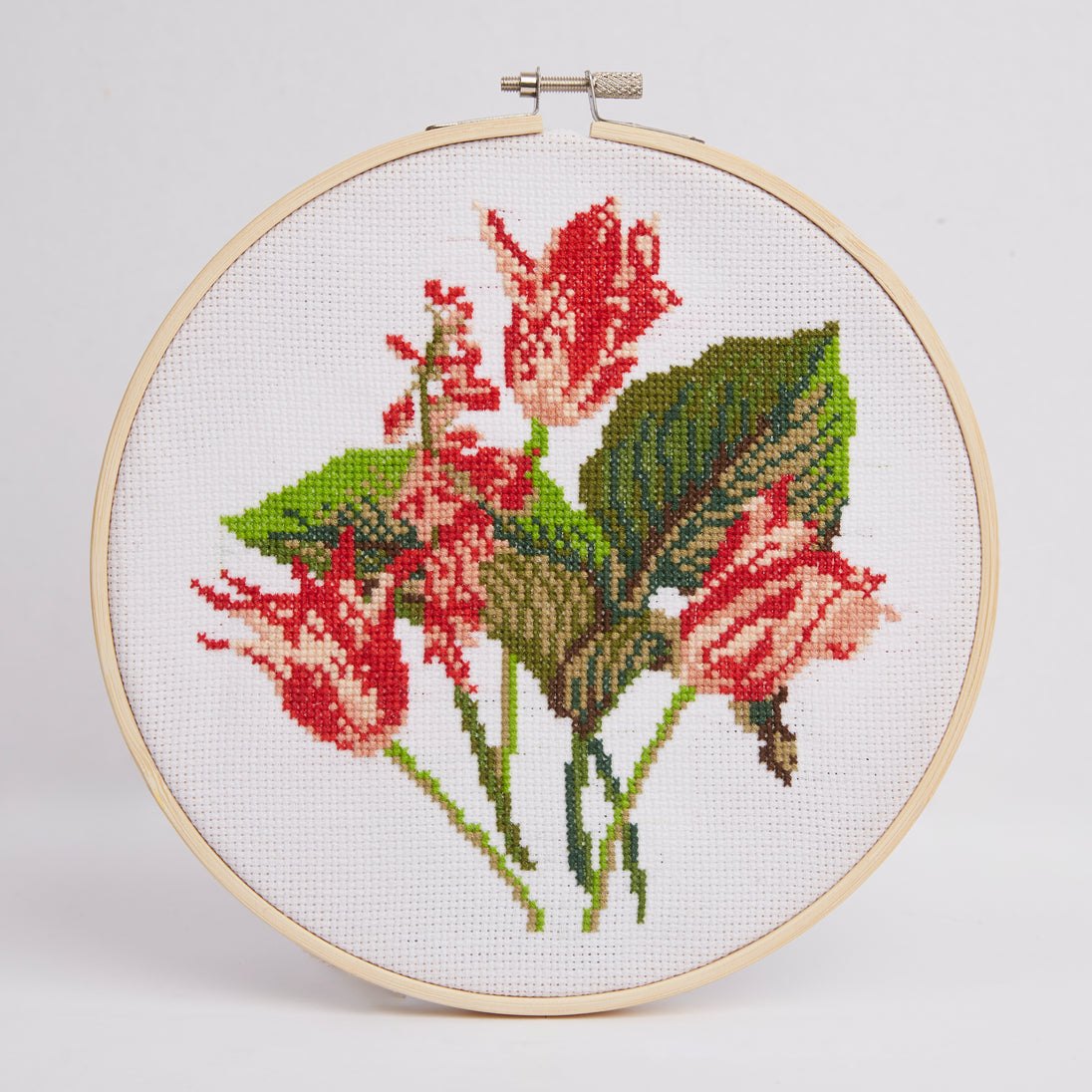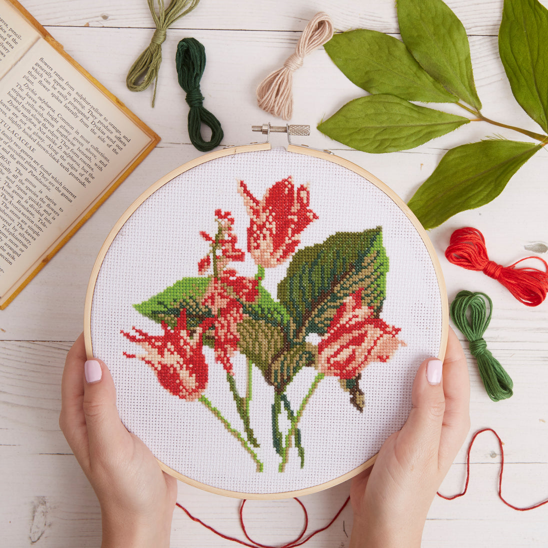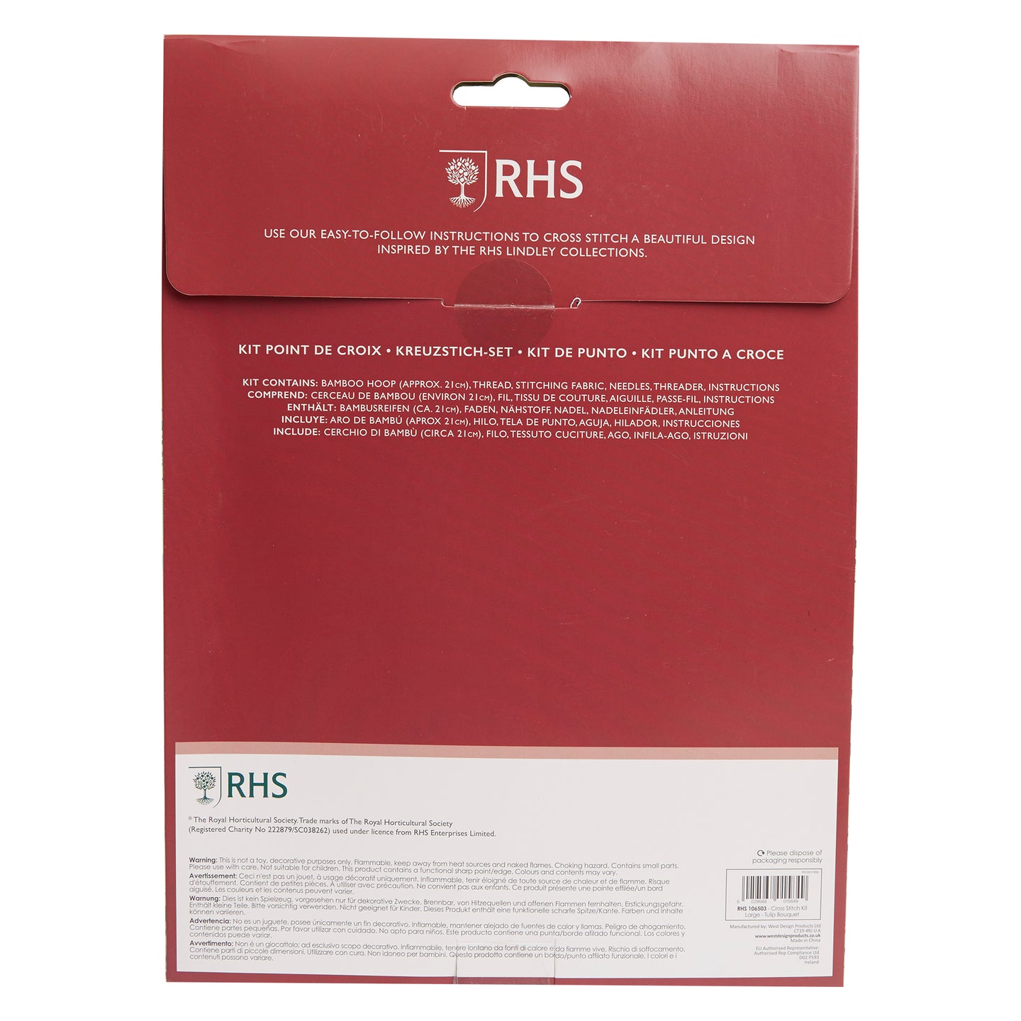 RHS The Royal Horticultural Society Cross Stitch Kit, Tulip Bouquet, 8", Multicoloured, Includes Bamboo Embroidery hoop, Aida Fabric, Embroidery Threads, Needles, Threader, Instructions