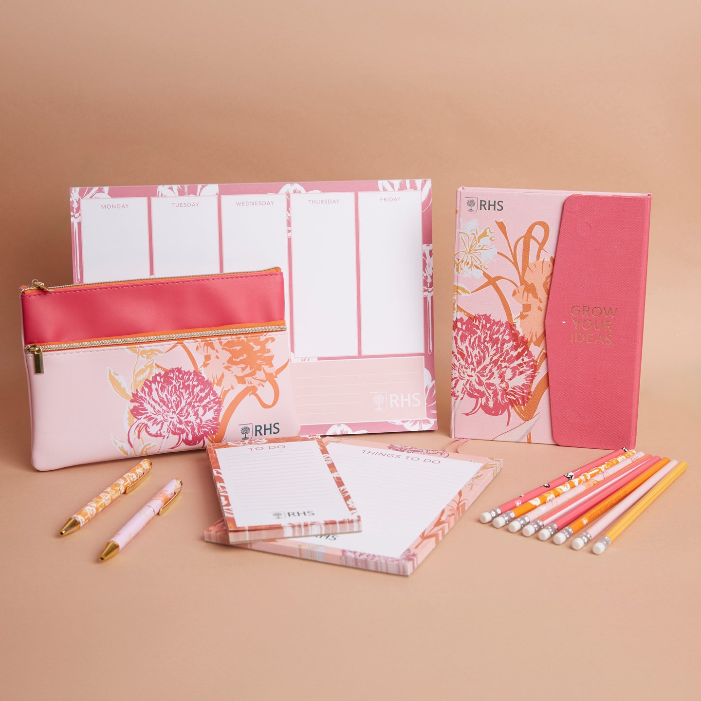 RHS The Royal Horticultural Society Dual Compartment Pencil Case, Bold Florals, 14.5 x 21.5 x 1cm, Multicoloured, For Pens, Pencils, Erasers, Ruler, Sharpner