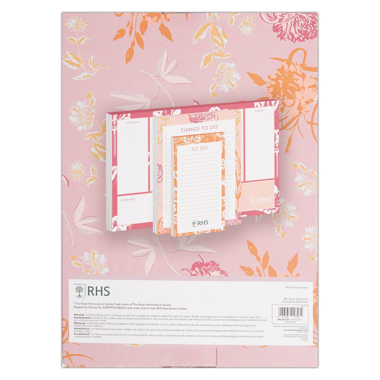 RHS The Royal Horticultural Society Set Of Pads 60 Sheets, 75GSM, Bold Florals, Pack Of 3, Multicoloured, For Sketching, Drawing, Scrapbooking, Notes, Ideas, Painting, Acrylic, Watercolour