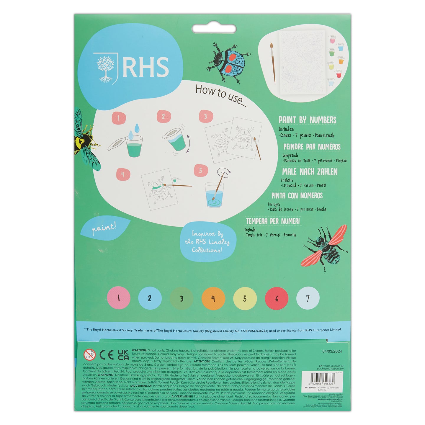 RHS The Royal Horticultural Society Paint By Numbers For Kids With 7 Paints & Brush, Butterflies, A4, Multicoloured, Gift For Kids, Fun Activity