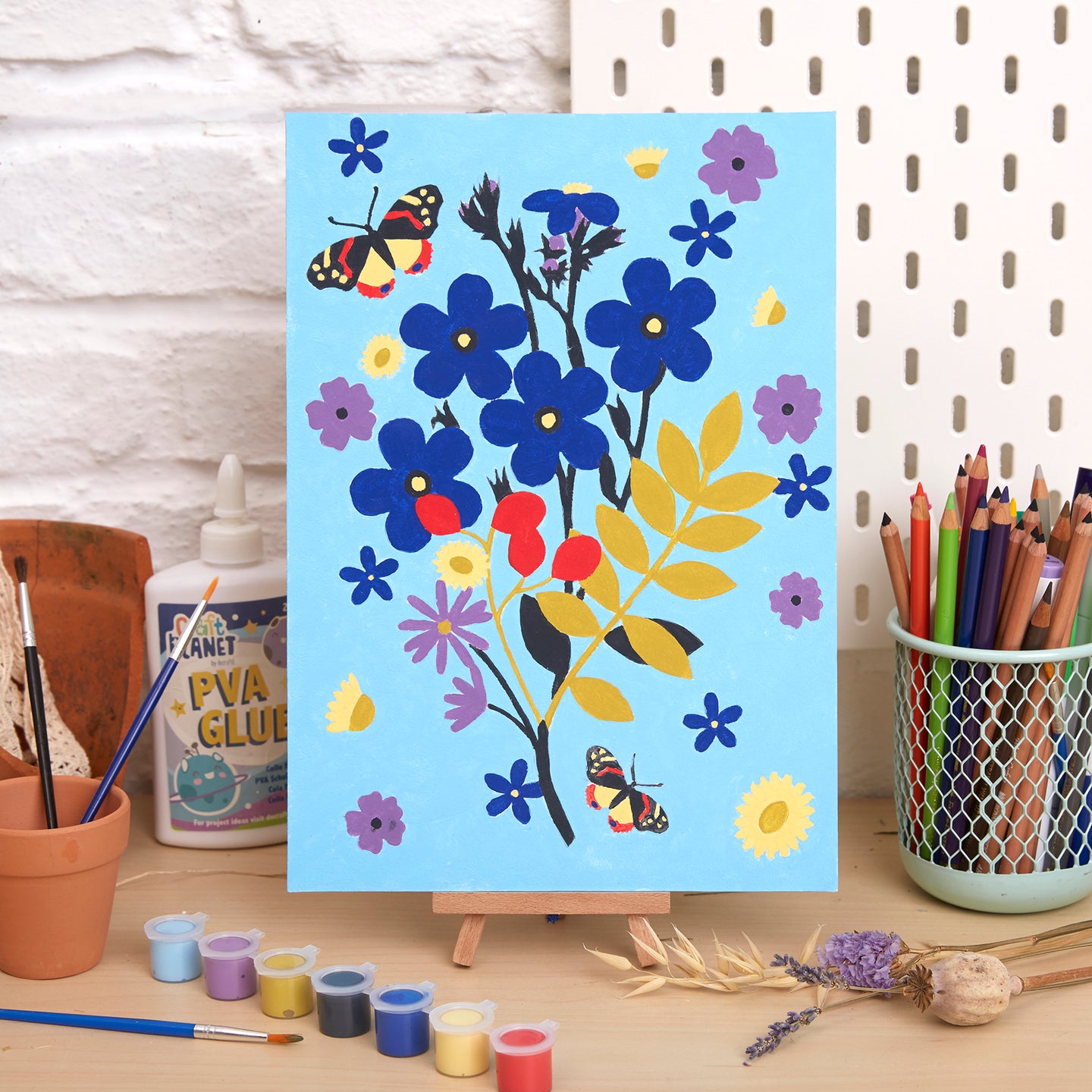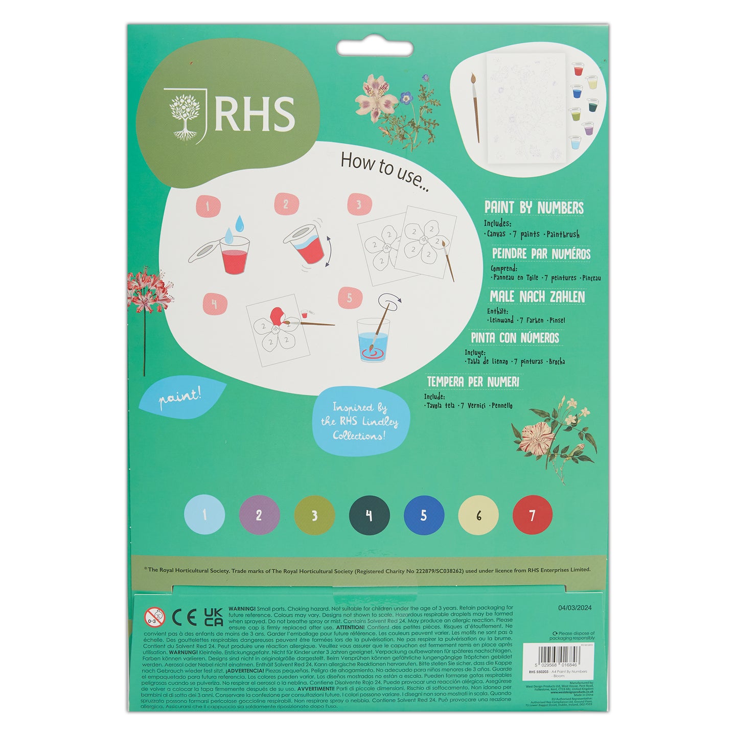 RHS The Royal Horticultural Society Paint By Numbers For Kids With 7 Paints & Brush, Flowers, A4, Multicoloured, Gift For Kids, Fun Activity
