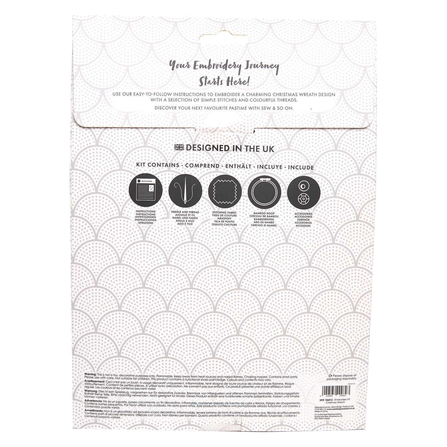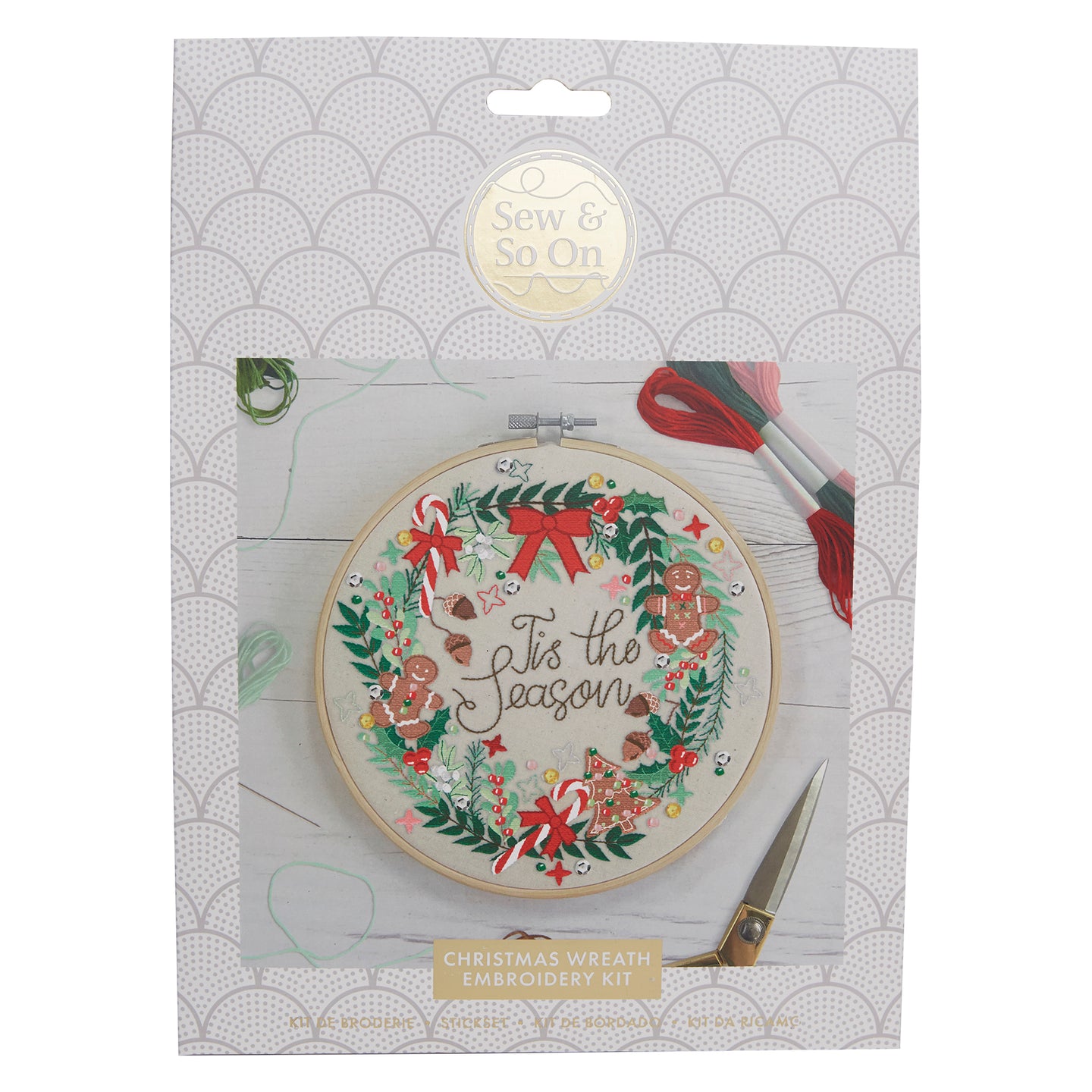 Sew & So On Embroidery Sewing Craft Kit Christmas Wreath, Includes All Craft Accessories Needed Ideal DIY Adult And Older Kids Craft Kits, Makes A Great Craft Art Gift, Use For Christmas Home Decor