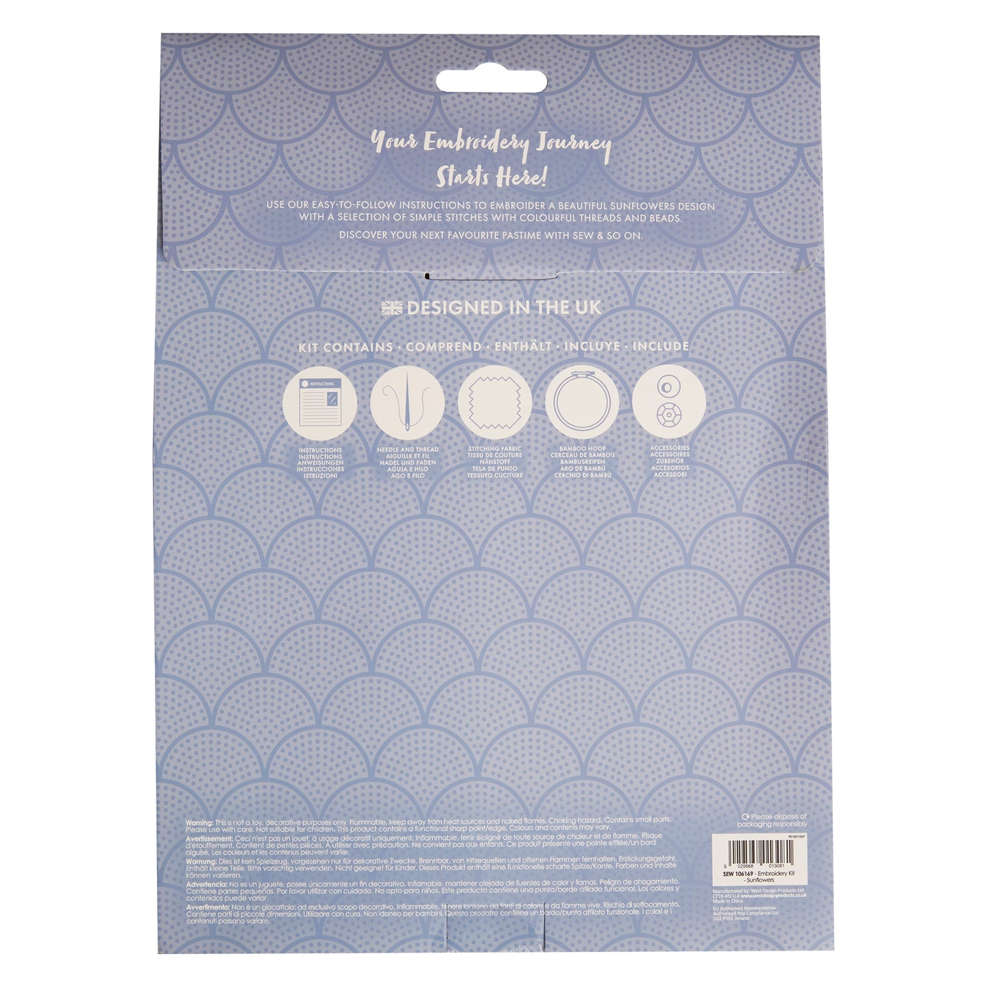 Premium Sew and So On kits are perfect for beginners or experienced sewers alike. This kit includes everything required to complete a stylish Sunflowers embroidery design that can be displayed in the bamboo hoop included.