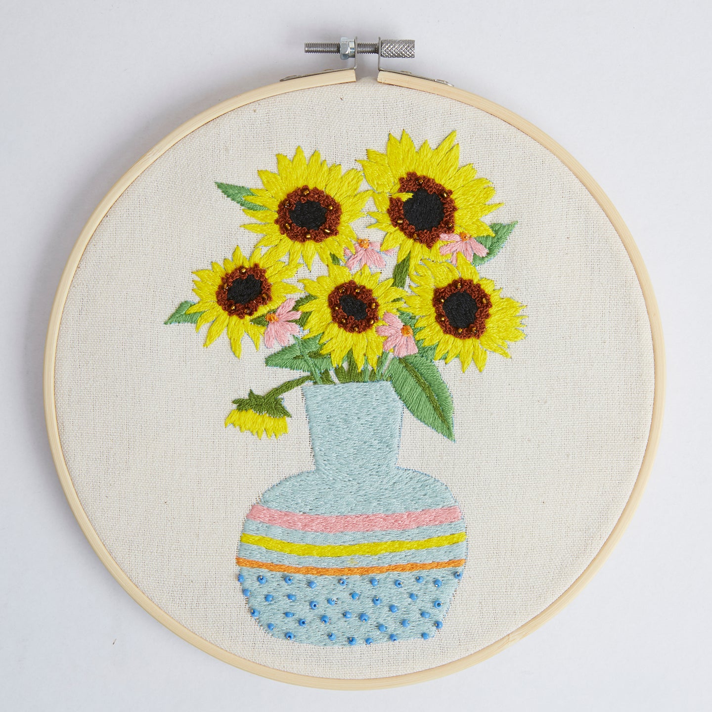 Sew & So On - Hanging Embroidery Sewing Craft Kit - Sunflowers, Flower Themed, Vase, Includes Everything Needed, Craft Kits, Makes A Great Craft Art Gift, Use For Home Decor