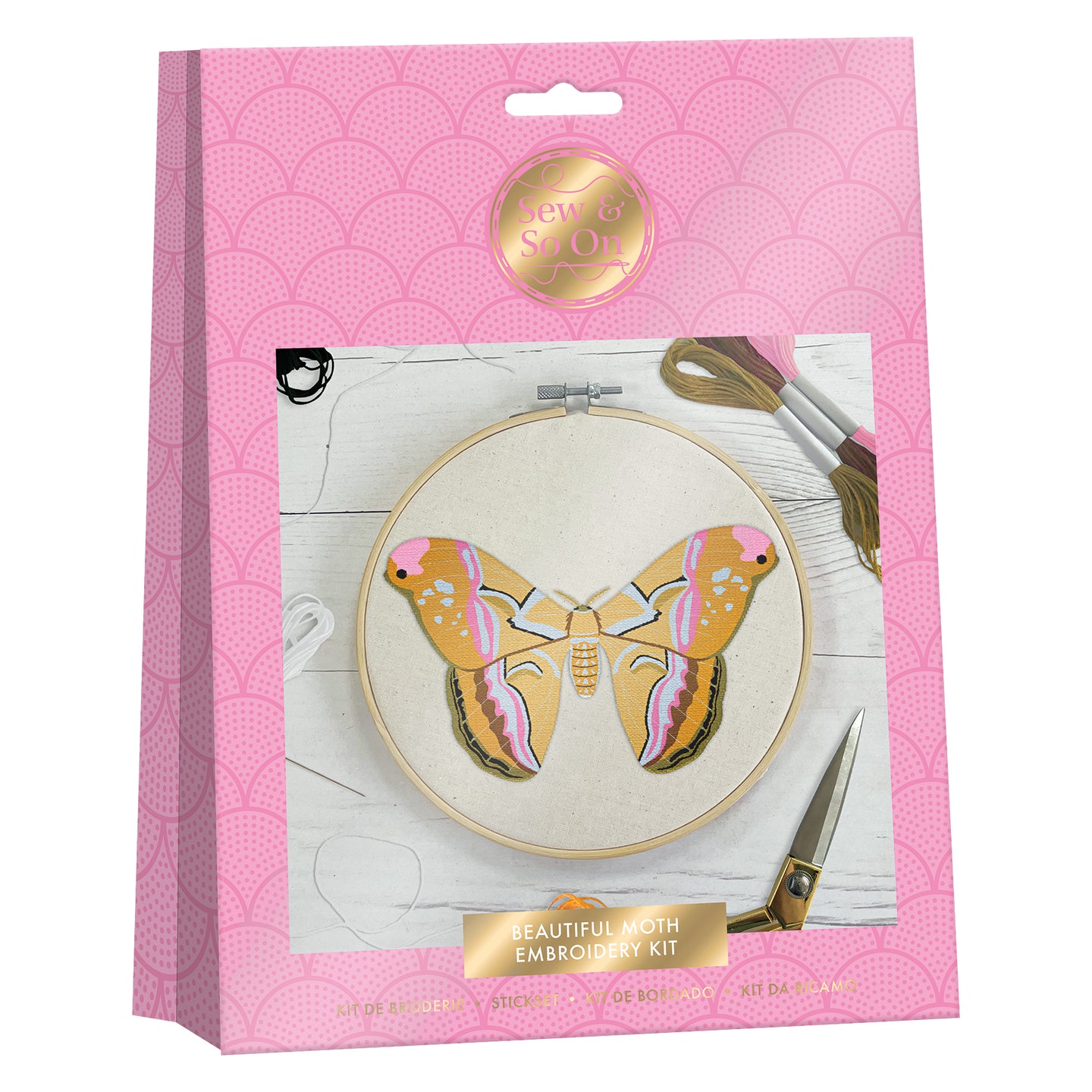 Sew & So On - Hanging Embroidery Sewing Craft Kit - Beautiful Moth, Colourful Moth, Butterfly, Includes Everything Needed, Craft Kits, Makes A Great Craft Art Gift, Use For Home Decor