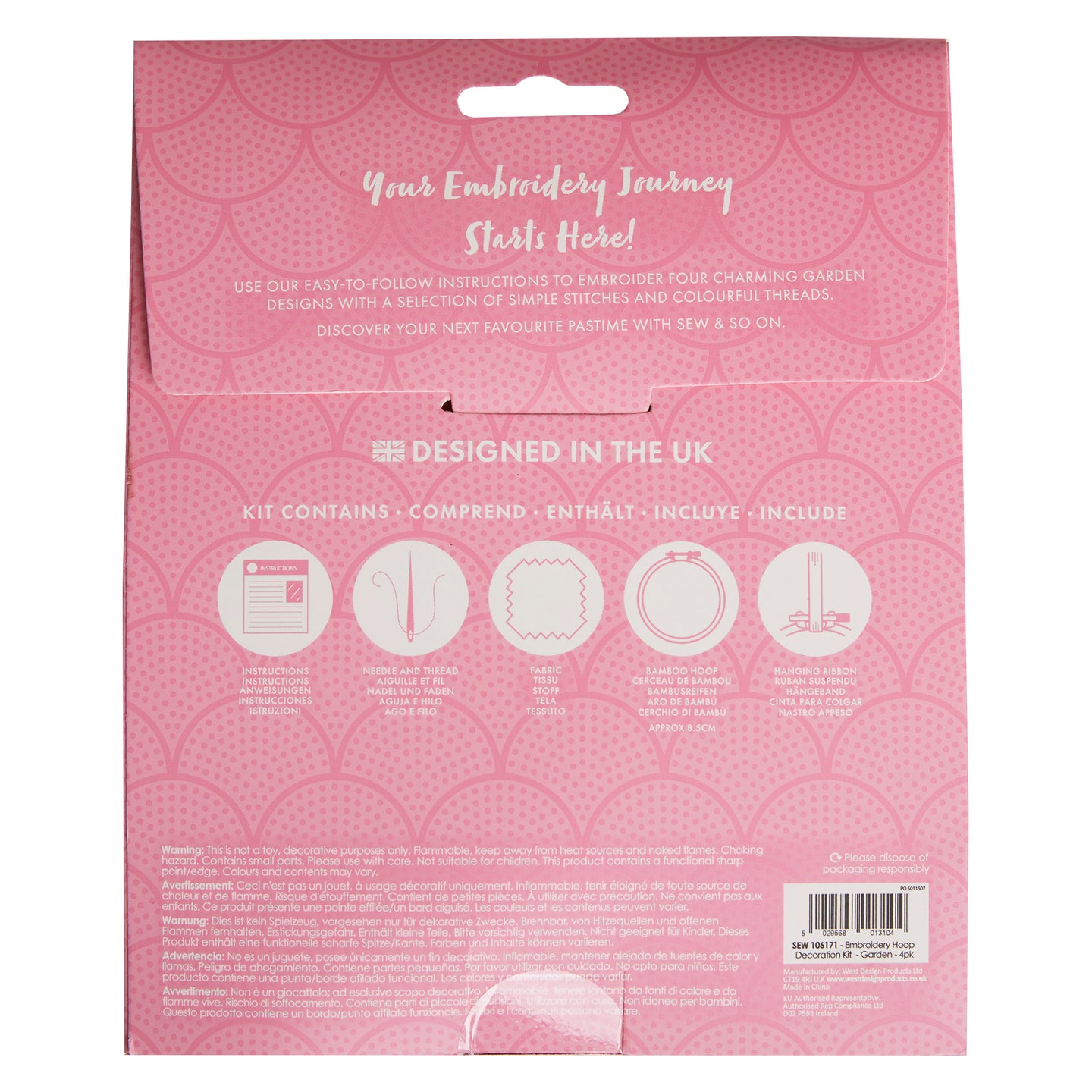 Premium Sew and So On kits are perfect for beginners or experienced sewers alike. This kit includes everything required to complete a set of 4 stylish embroidery designs in a Garden theme that you can display in the bamboo hoops included.