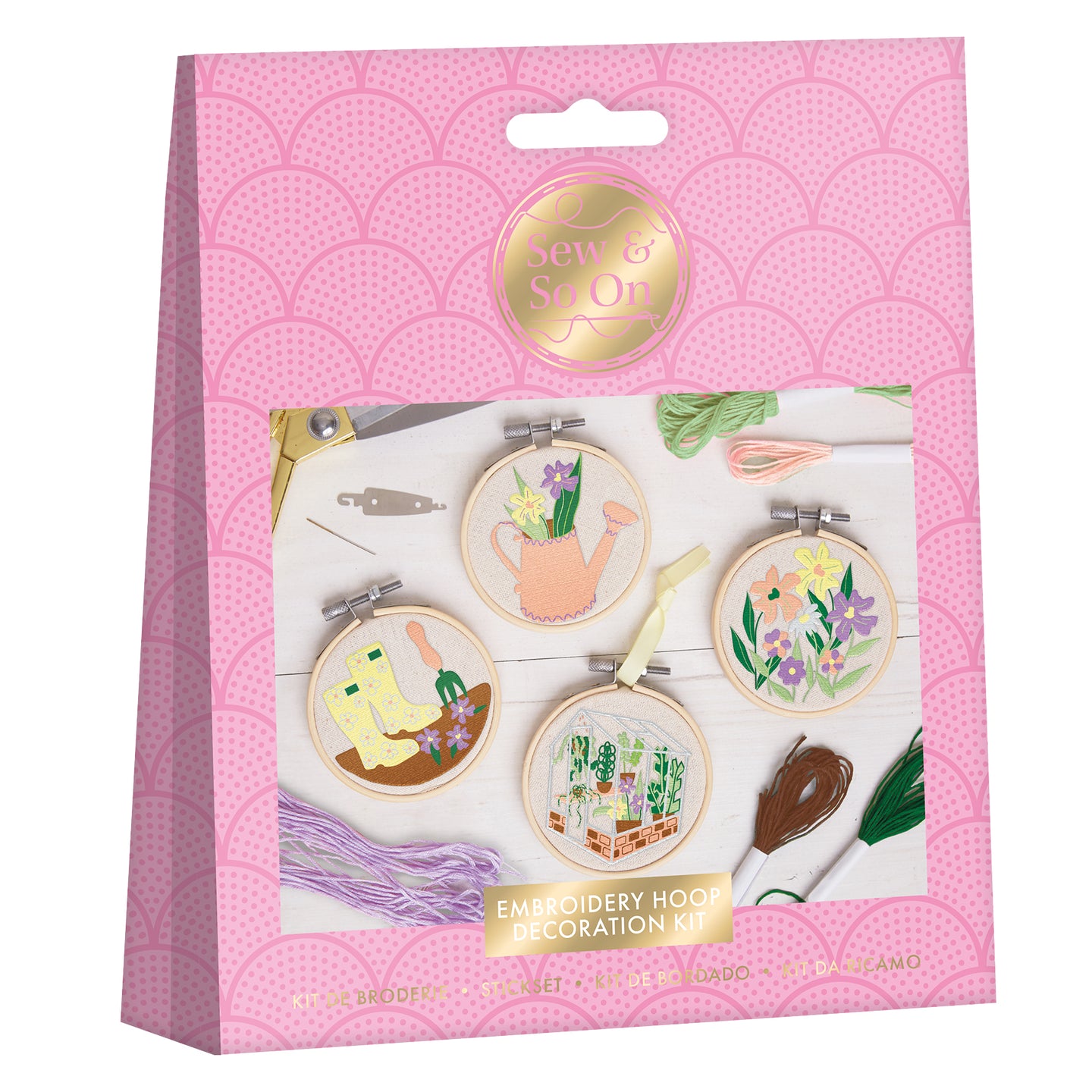 Sew & So On - Hanging Embroidery Sewing Craft Kit - Garden, Outdoors Themed, Watering Can, Wellington Boots, Flowers, Greenhouse, Includes Everything Needed, Craft Kits, Makes A Great Craft Art Gift