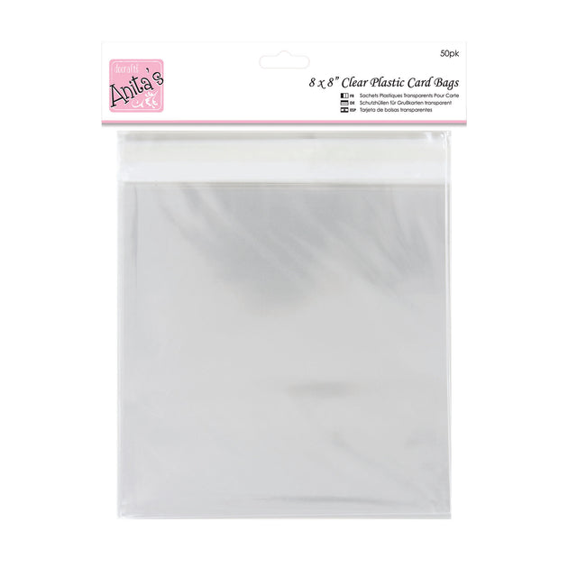 Anita's Card Bag, 220 x 220mm, Clear, Pack Of 50, Plastic Bag, Card Protection Bag, For Home, Art, Craft, Cardmaking
