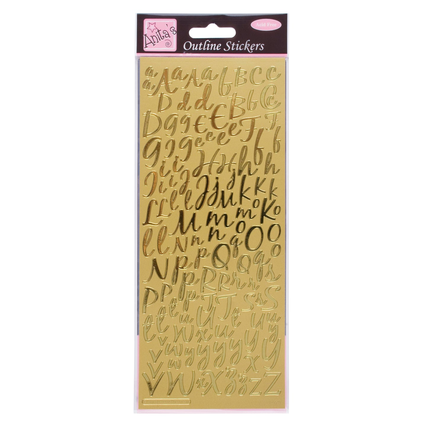 Anita's Outline Stickers, Modern Alphabet, Gold, For Scrapbooking, Card Making, Kids Play, Homework, Art, Craft, Embelish, Decorative, Paper, Card, Glass, Metal, Plastic, Foam