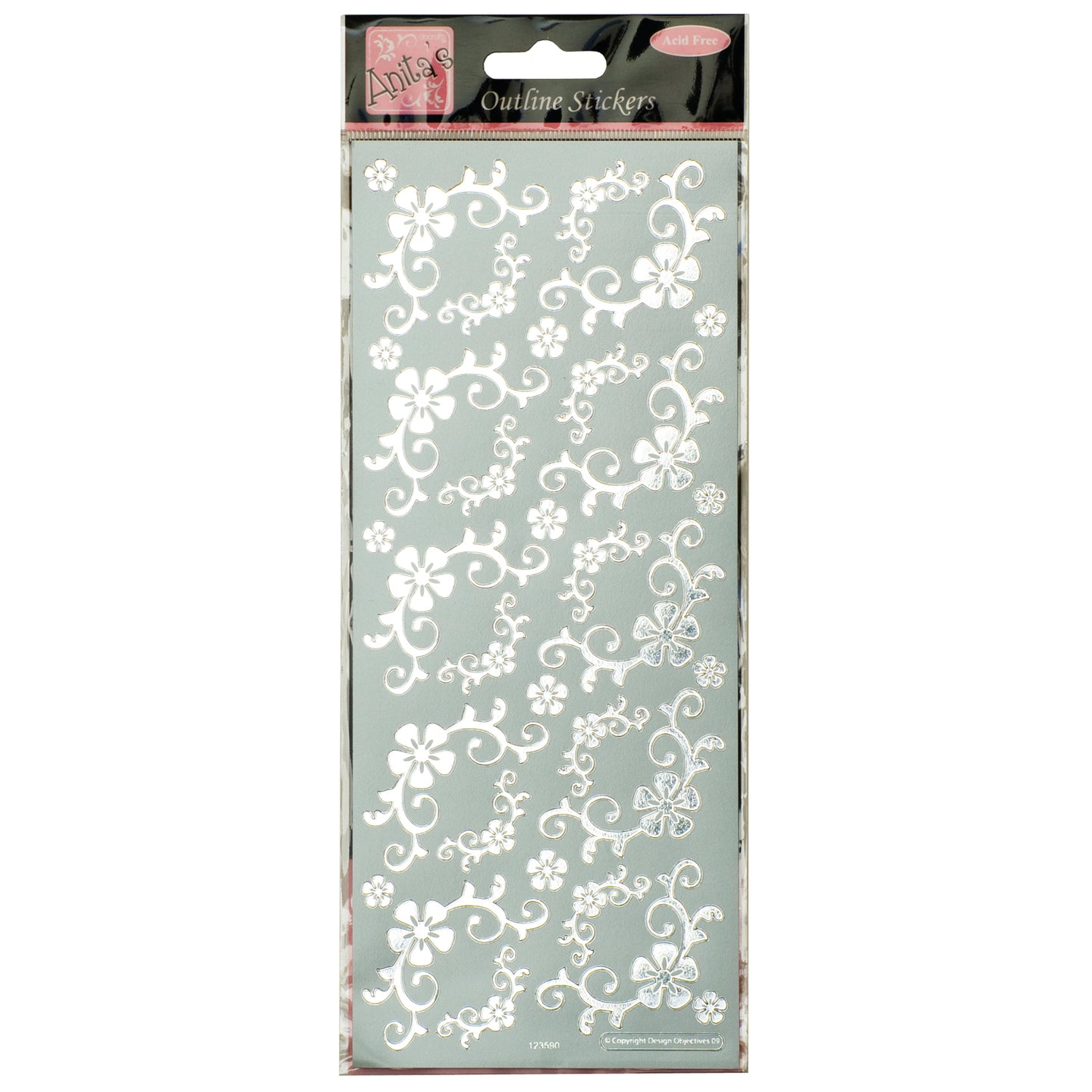 Anita's Outline Stickers, Fanciful Floral Corners, Silver, For Scrapbooking, Card Making, Kids Play, Homework, Art, Craft, Embelish, Decorative, Paper, Card, Glass, Metal, Plastic, Foam