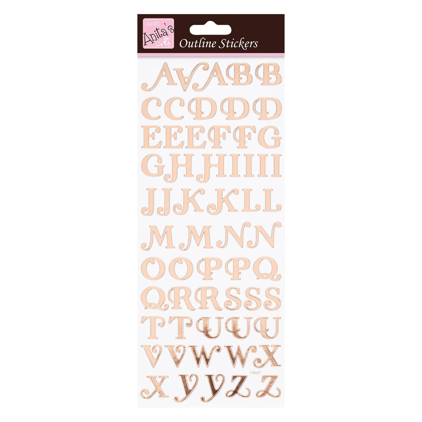 Anita's Outline Stickers, Script Alpha Upper Case, Rose Gold On White, For Scrapbooking, Card Making, Kids Play, Homework, Art, Craft, Embelish, Decorative, Paper, Card, Glass, Metal, Plastic, Foam
