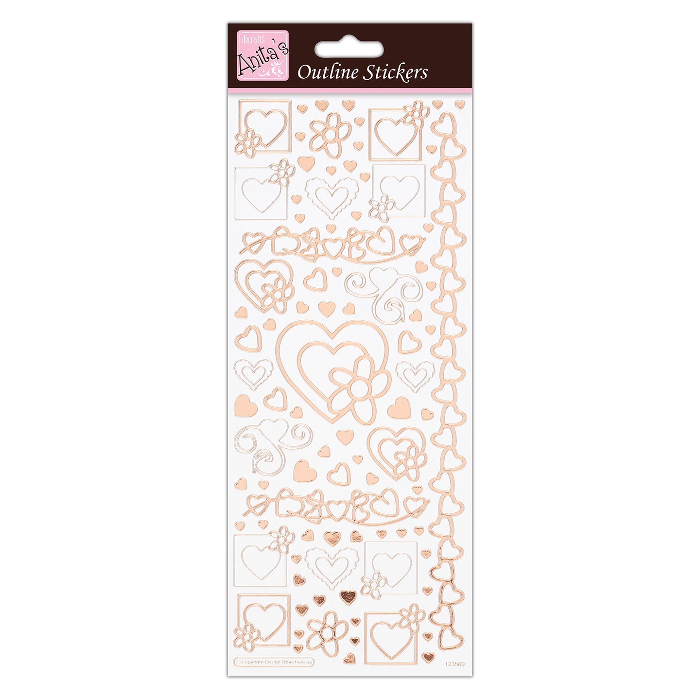 Anita's Outline Stickers, Hearts, Rose Gold On White, For Scrapbooking, Card Making, Kids Play, Homework, Art, Craft, Embelish, Decorative, Paper, Card, Glass, Metal, Plastic, Foam