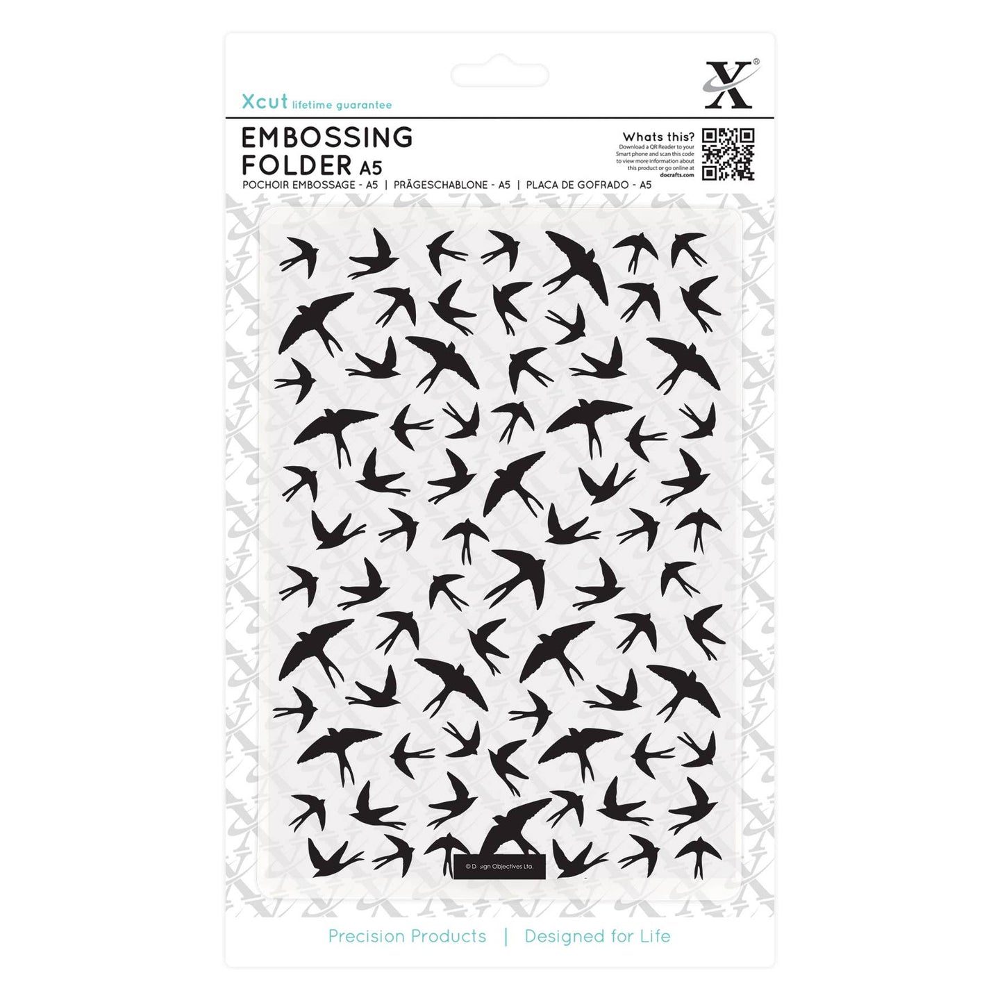Xcut Embossing Folder, Swallow Pattern, White, A5, A Stencil that's ideal for Card Making and a Wedding Card, Decorate your Photo Album and Photo Paper with a DIY Project
