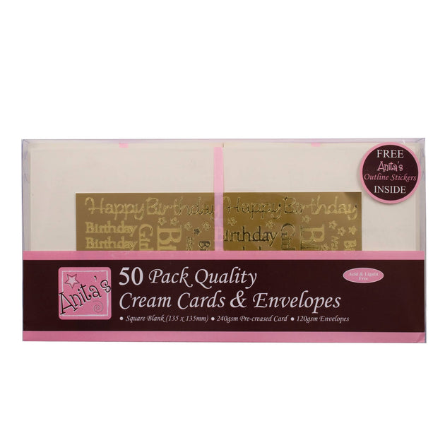 Anita's Square Plain, Blank Cards & Envelopes, 135x 135mm, Cream, Pack Of 50, For Home, Wedding, Birthday, Christmas, Thank You, Art & Craft, Scrapbooking Supplies, Baby Shower, Card Making