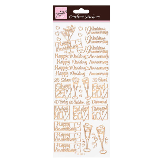 Anita's Outline Stickers, Wedding Anniversary, Rose Gold On White, For Scrapbooking, Card Making, Kids Play, Homework, Art, Craft, Embelish, Decorative, Paper, Card, Glass, Metal, Plastic, Foam